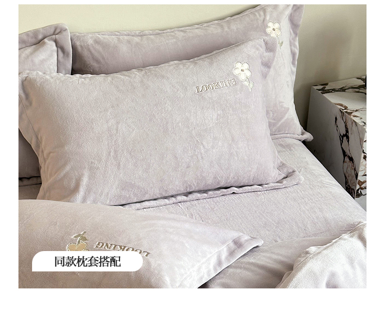 商品名称:名品优仓 2024新款牛奶绒绣花四件套-米娅 淡雅紫
