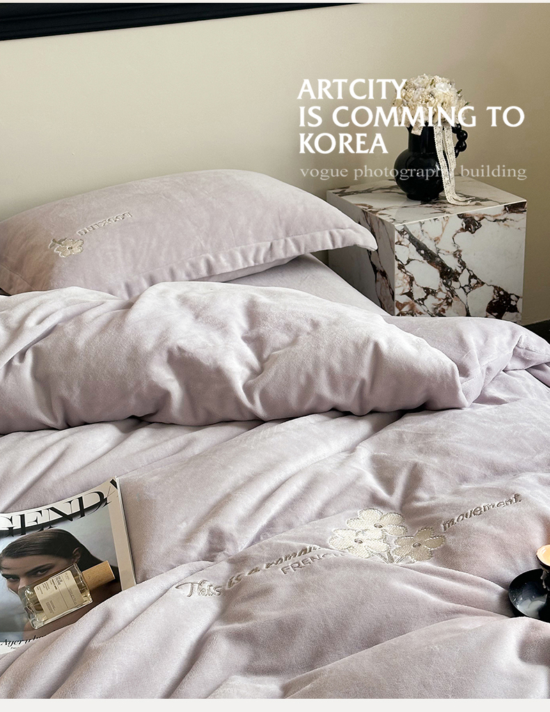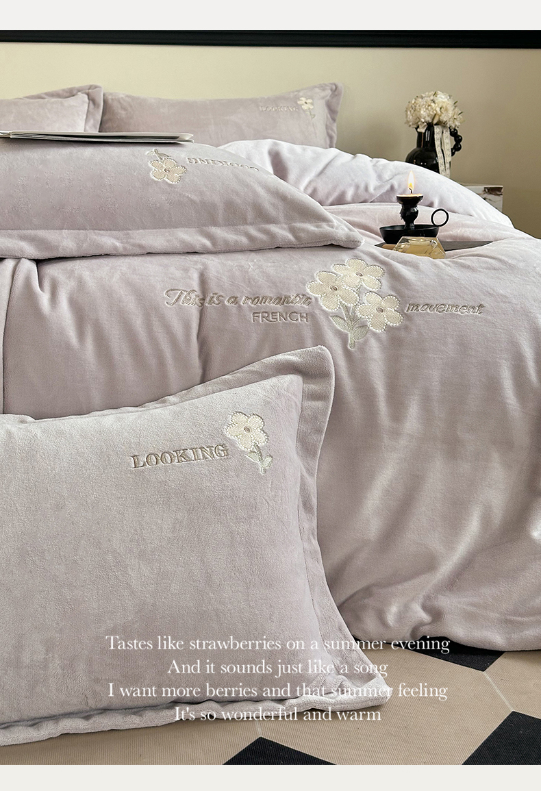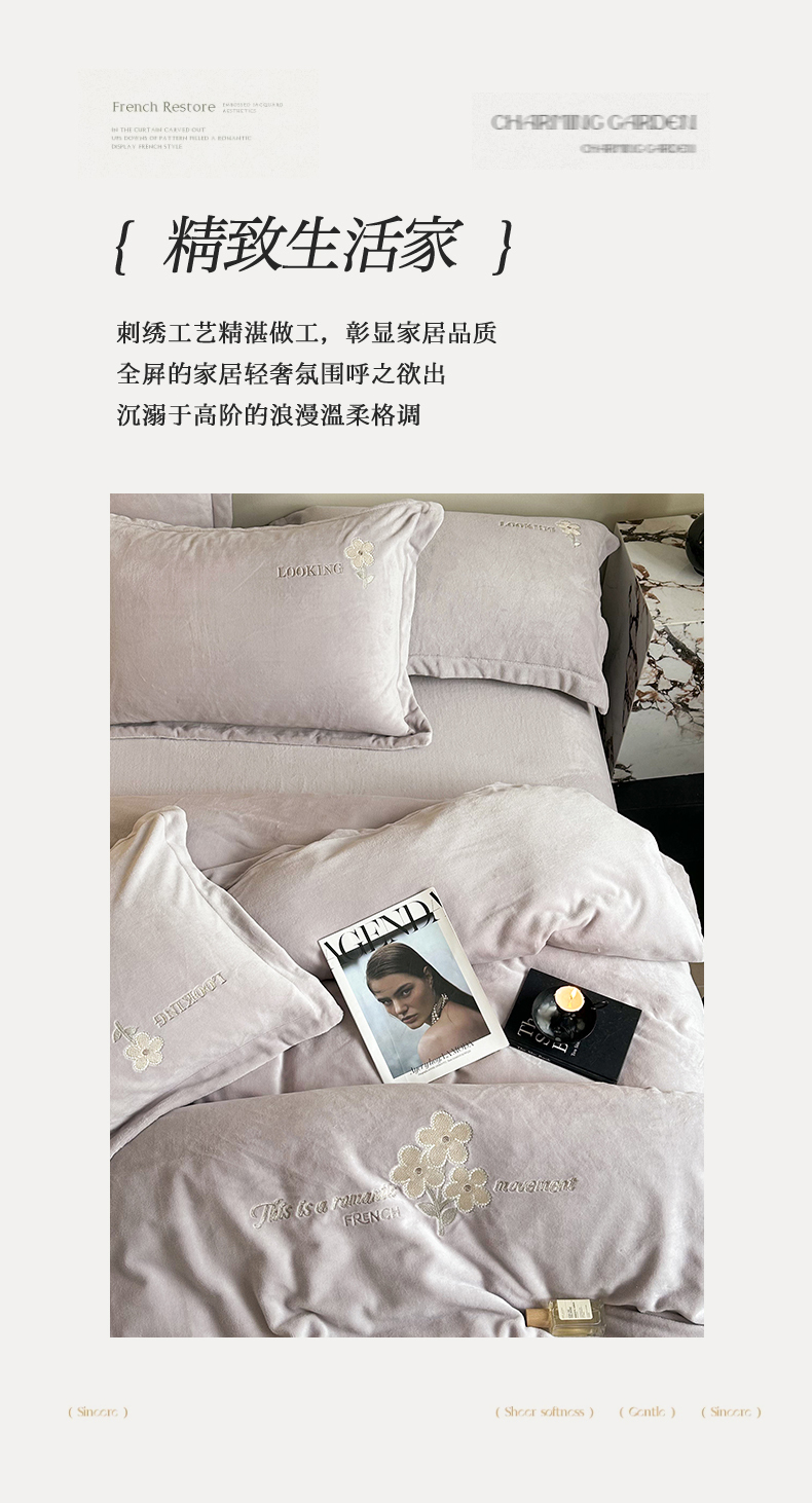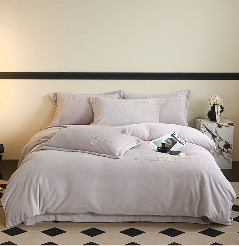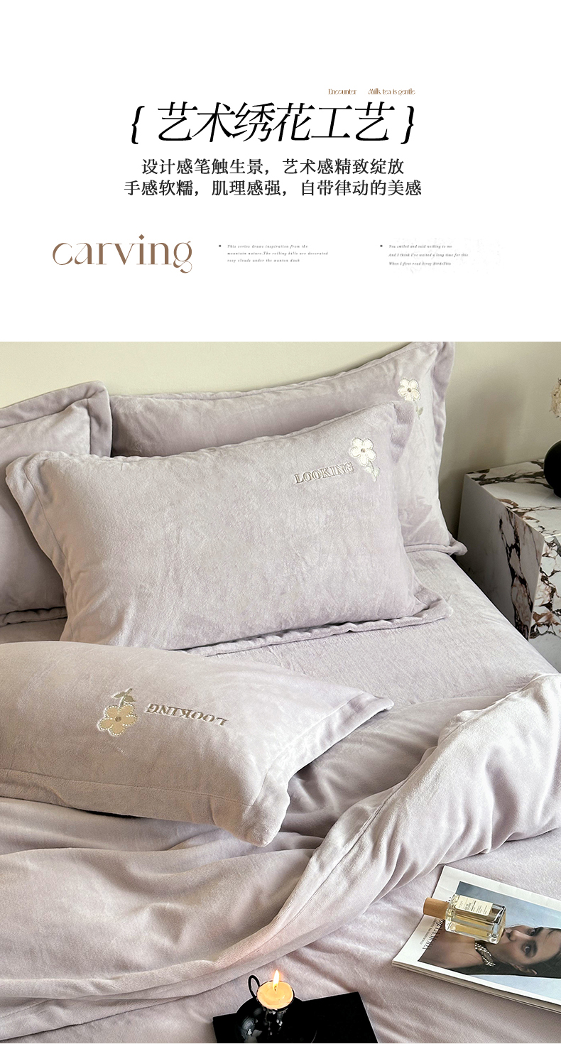 名品优仓 2024新款牛奶绒绣花四件套-米娅 淡雅紫