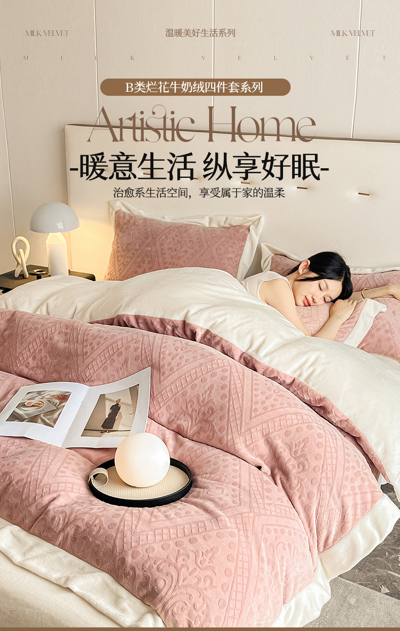 (总)无界 2024新款B类牛奶绒雕花绒四件套-梵妮(风格2)