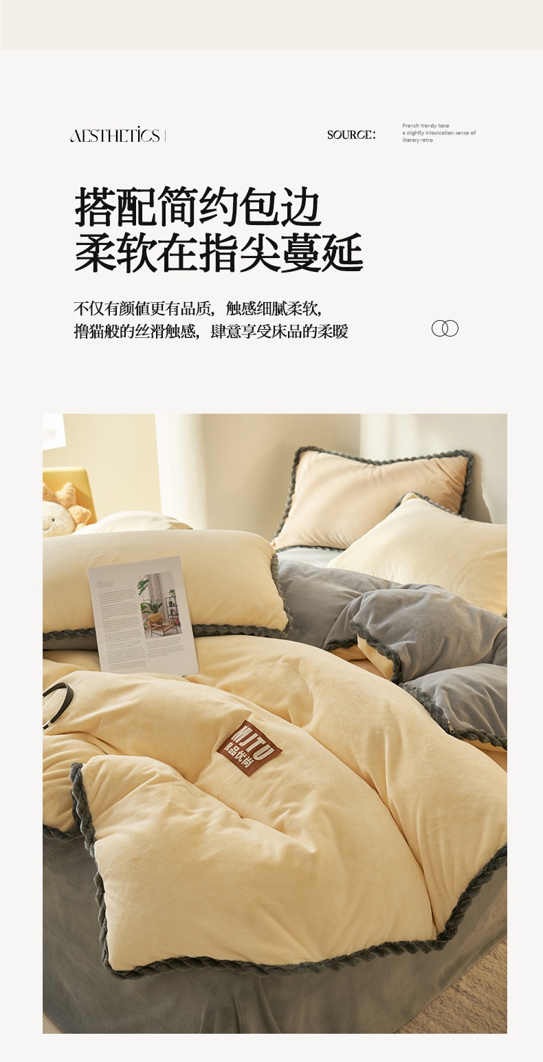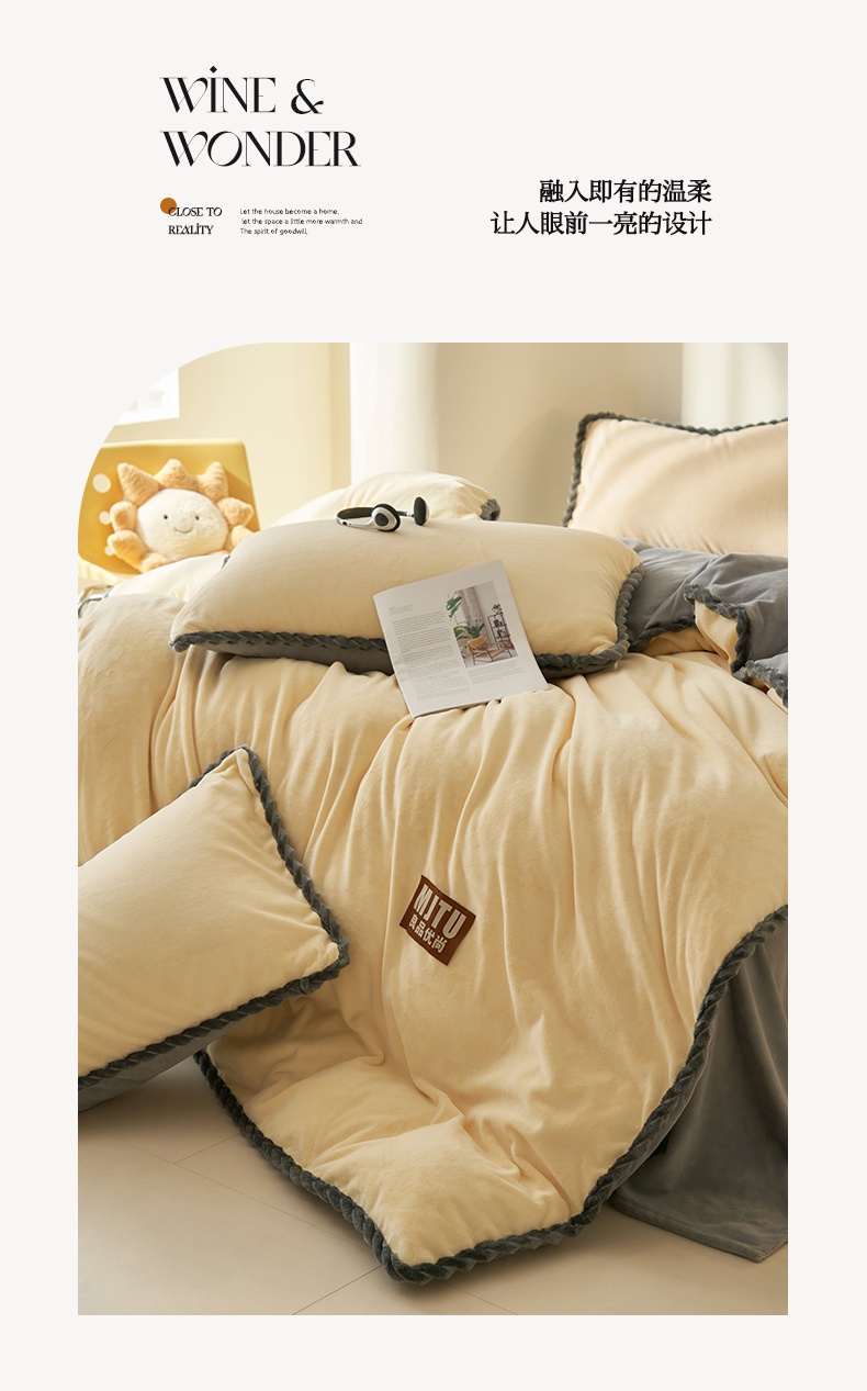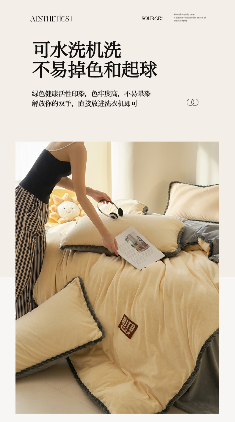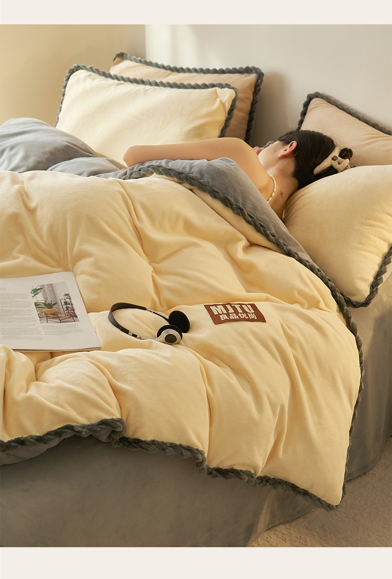• 91家纺网 家纺一手货源 找家纺 晨曦家纺 2024新款日系简约小包边牛奶绒单被套 简约-奶黄