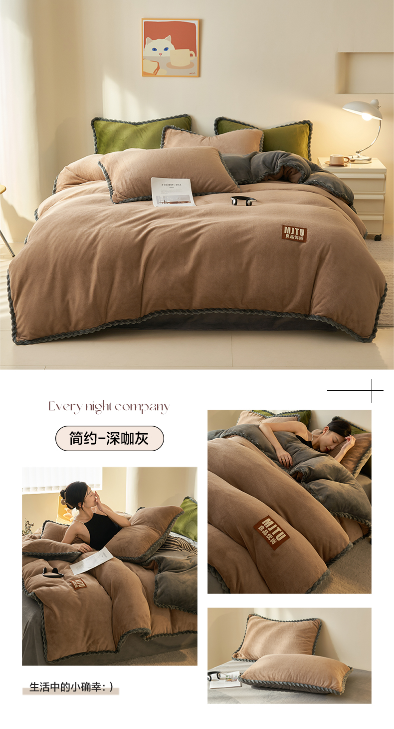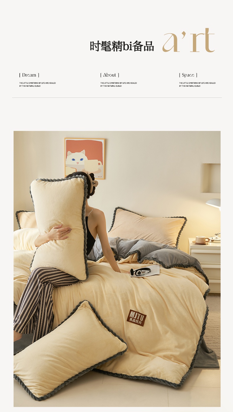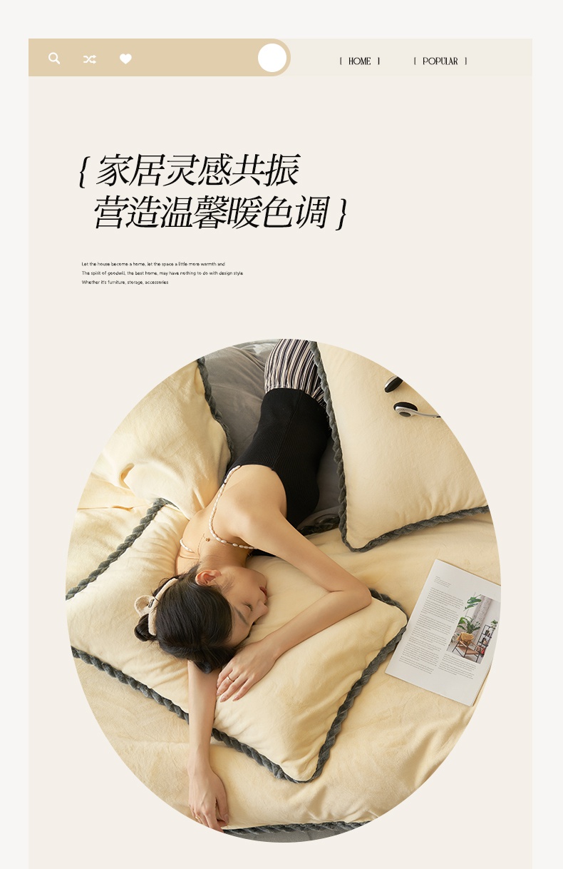 • 91家纺网 家纺一手货源 找家纺 晨曦家纺 2024新款日系简约小包边牛奶绒单被套 简约-奶黄