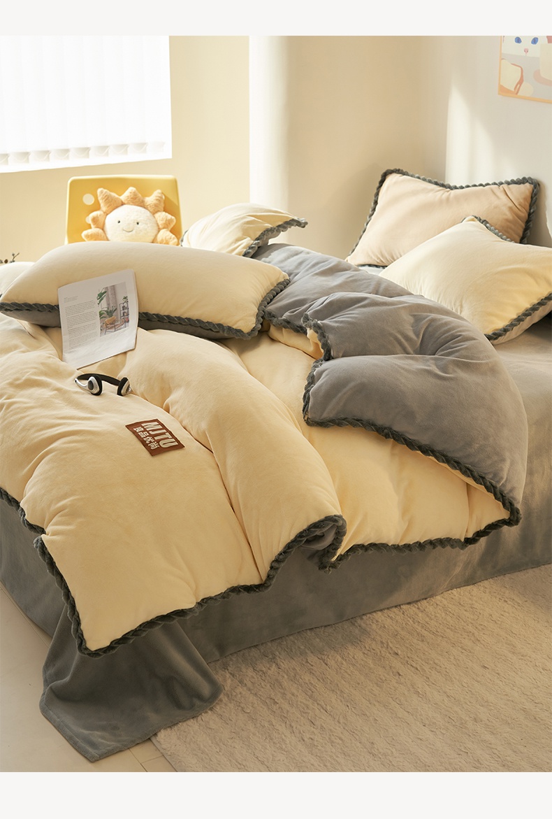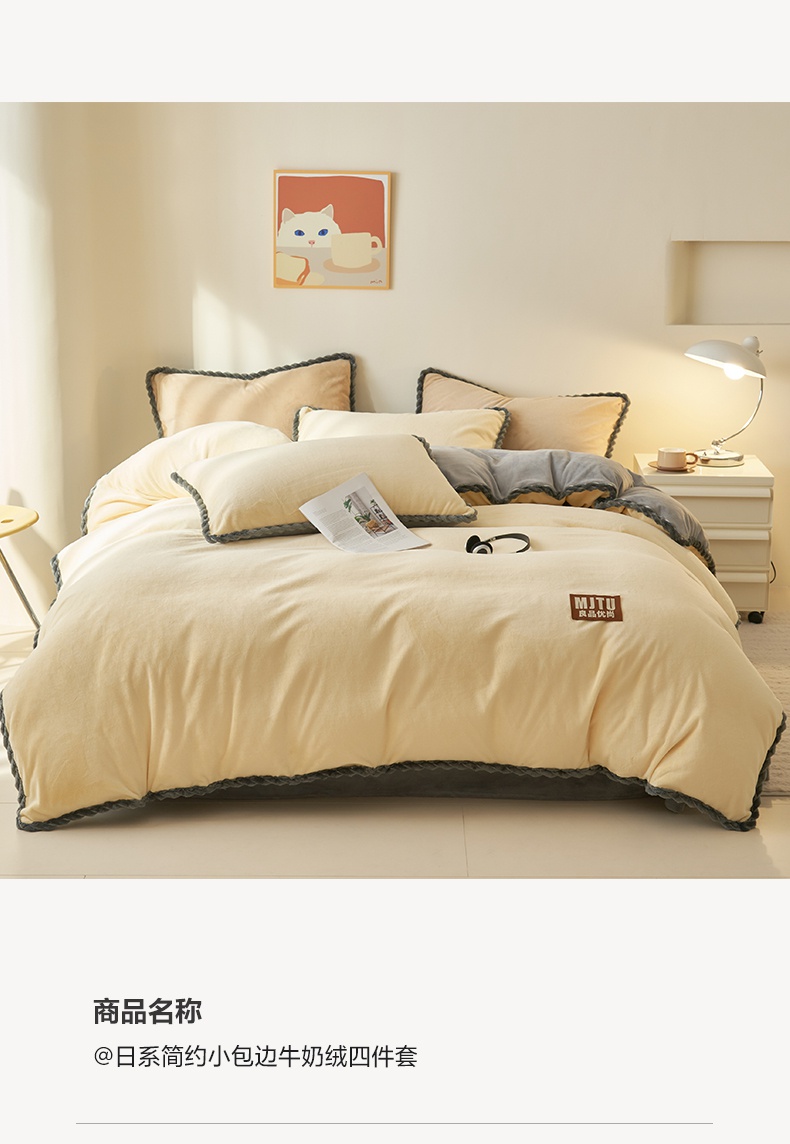 晨曦家纺 2024新款日系简约小包边牛奶绒单被套 简约-奶黄