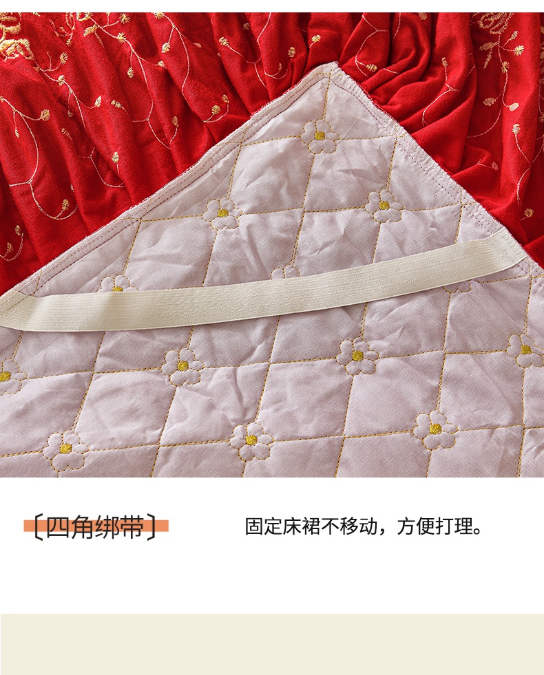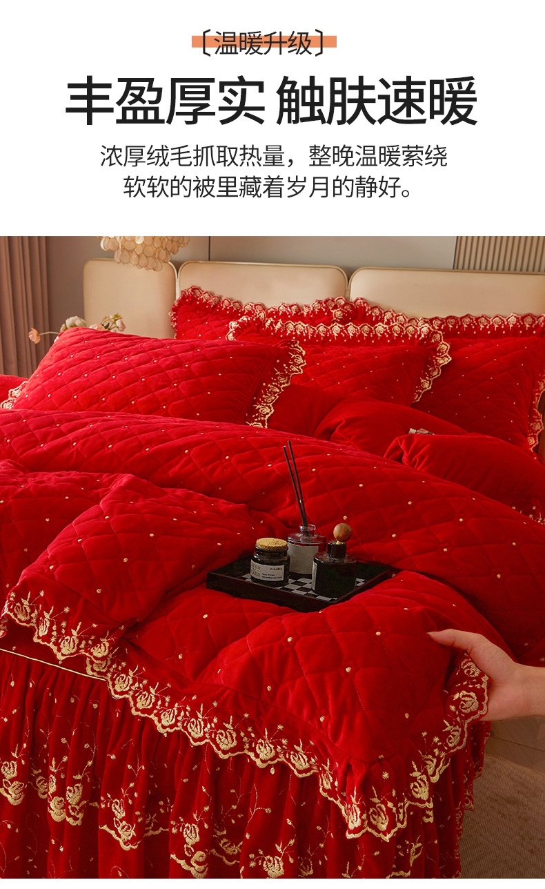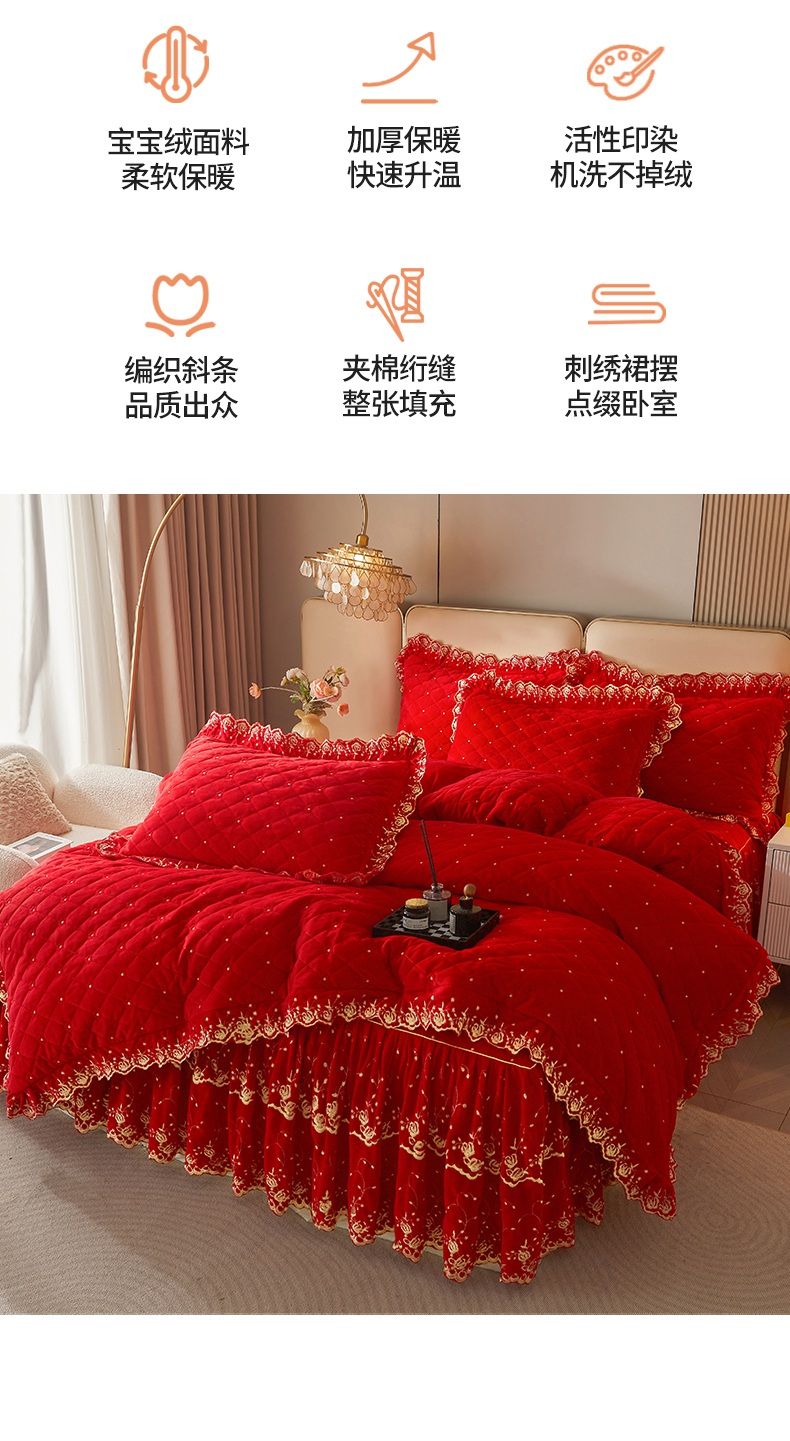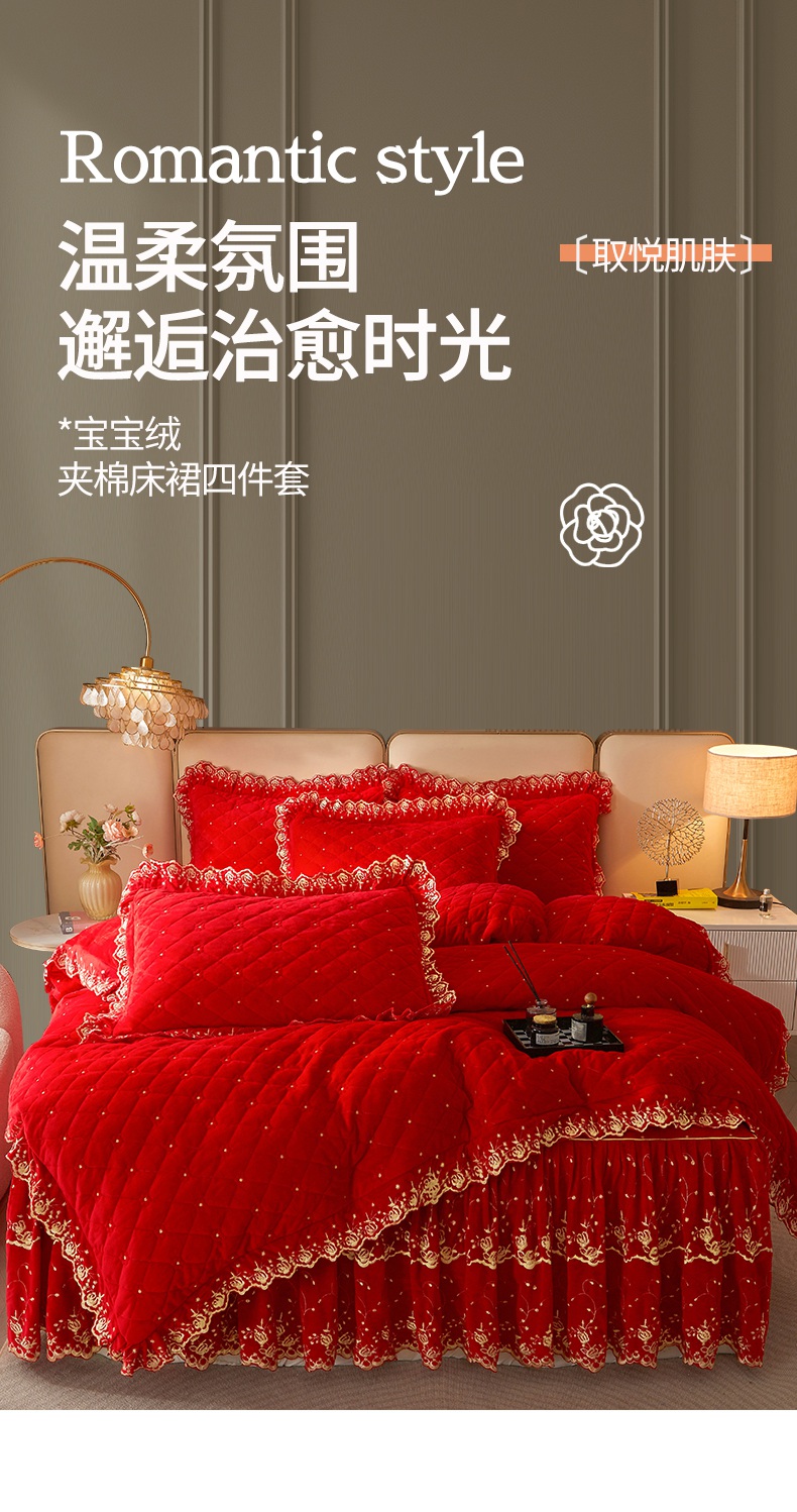 当前位置: 91家纺网 > 商品网购 > 床品套件 > 四件套 > 其它四件套 > 罗艺轩 2024新款加厚宝宝绒夹棉床裙四件套-梦幻星辰 喜庆红
