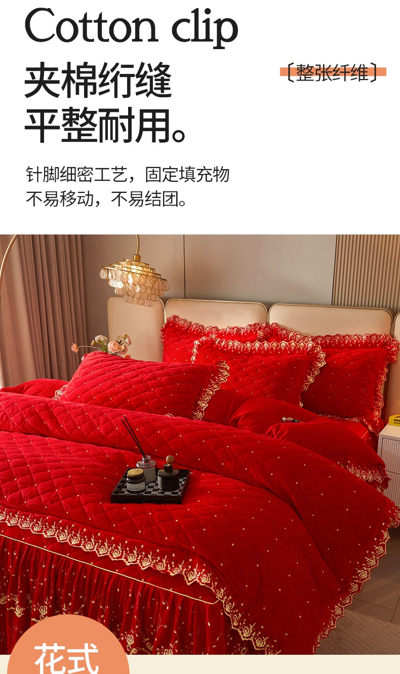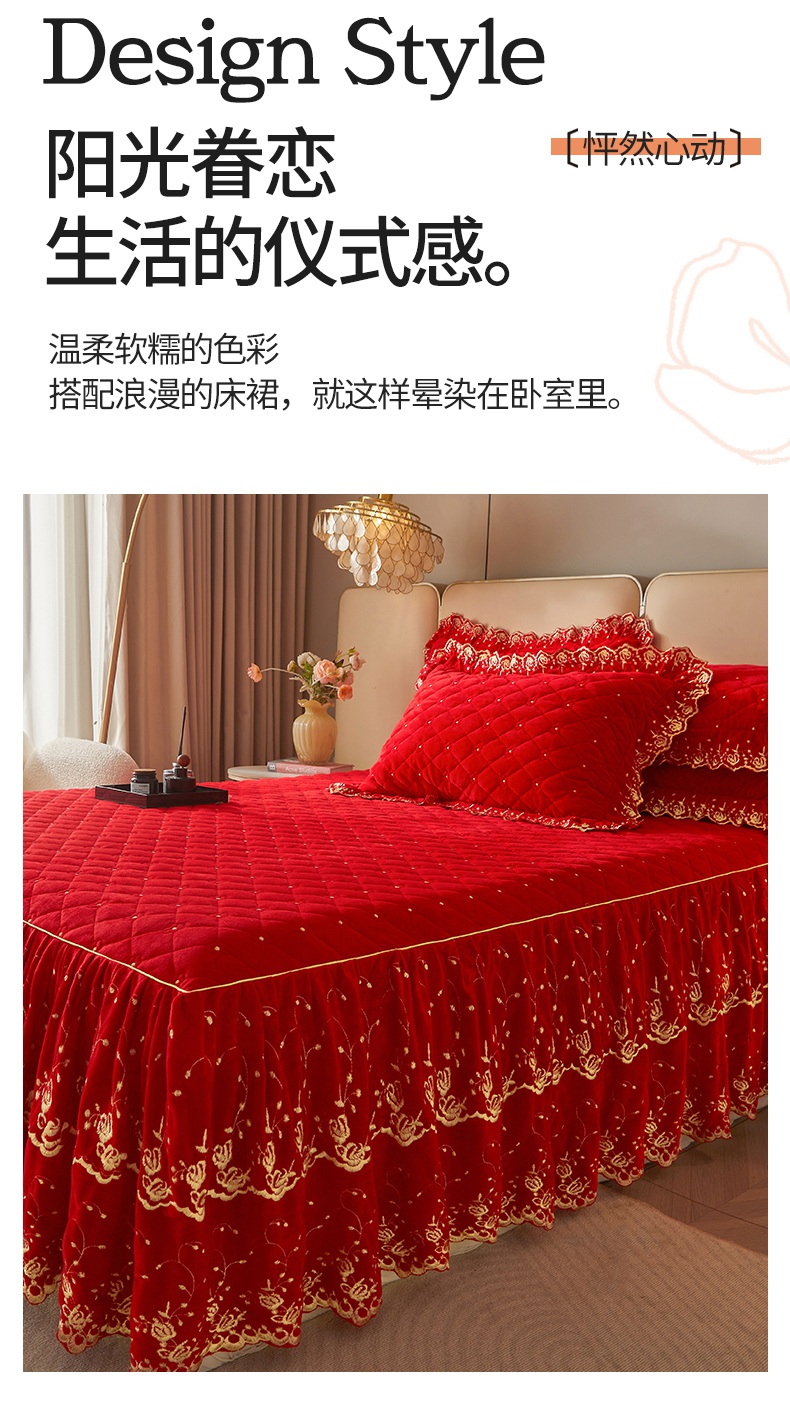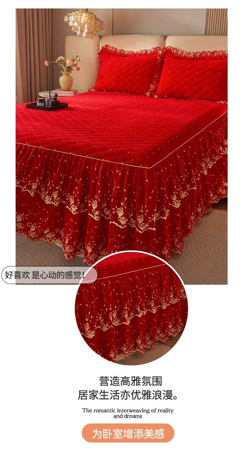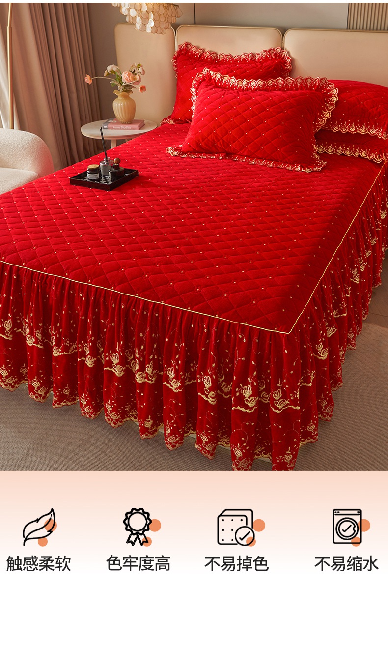 当前位置: 91家纺网 > 商品网购 > 床品套件 > 四件套 > 其它四件套 > 罗艺轩 2024新款加厚宝宝绒夹棉床裙四件套-梦幻星辰 喜庆红