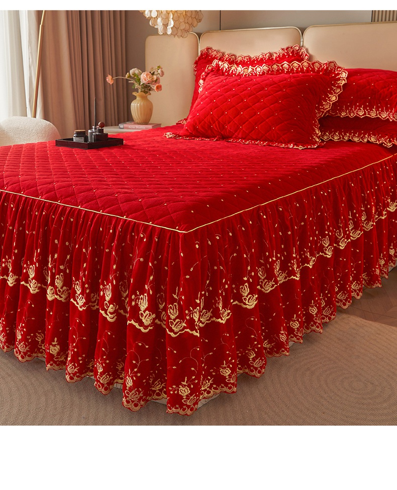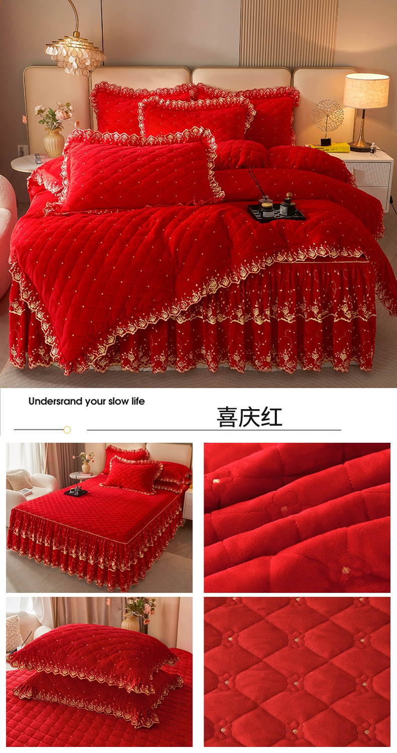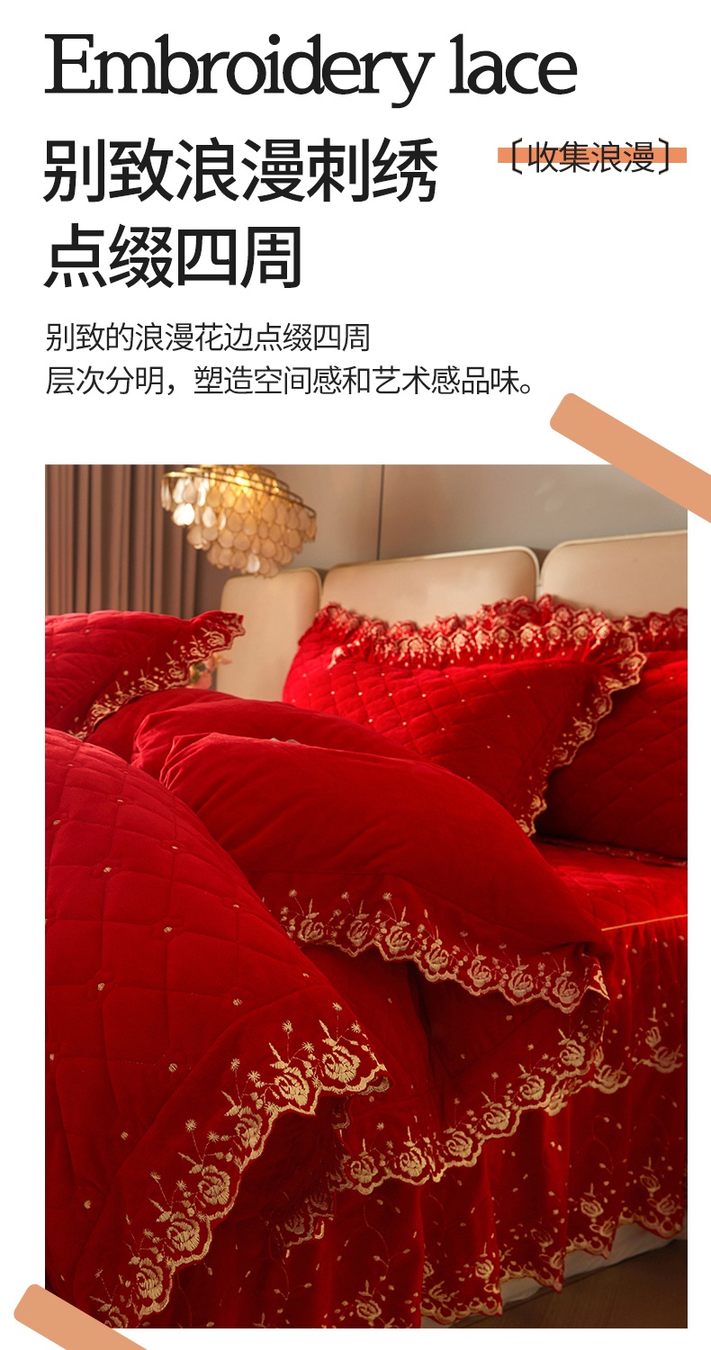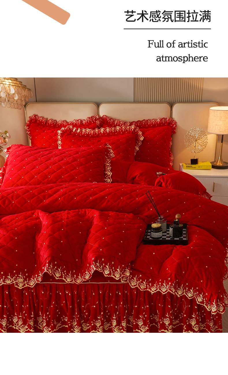 当前位置: 91家纺网 > 商品网购 > 床品套件 > 四件套 > 其它四件套 > 罗艺轩 2024新款加厚宝宝绒夹棉床裙四件套-梦幻星辰 喜庆红