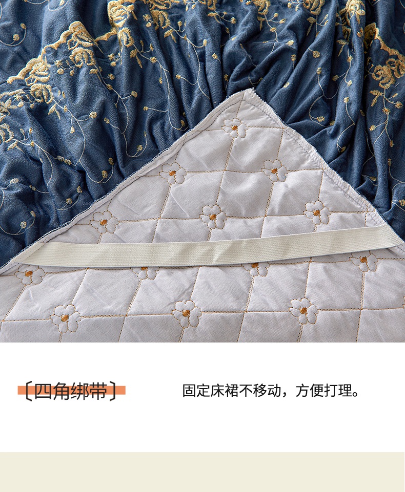 • 91家纺网 家纺一手货源 找家纺 罗艺轩 2024新款加厚宝宝绒夹棉床裙三件套-梦幻星辰 宝石蓝