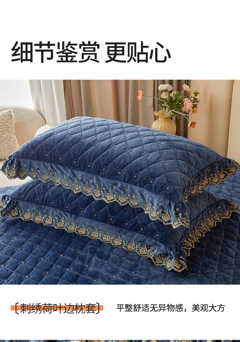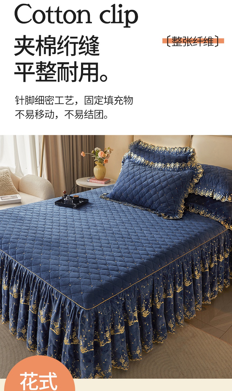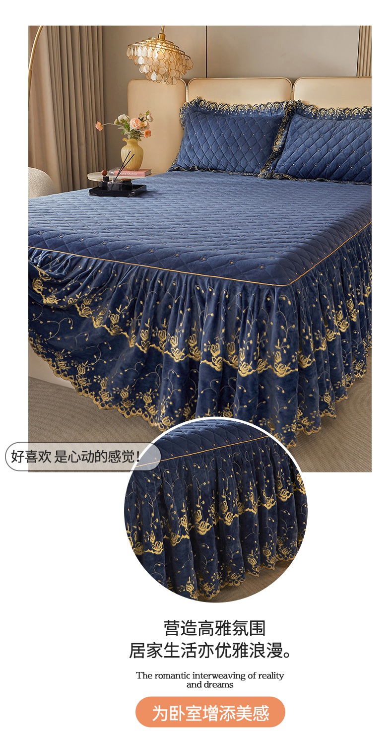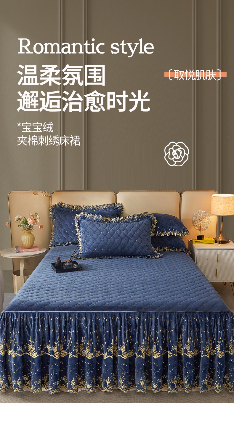 罗艺轩 2024新款加厚宝宝绒夹棉床裙三件套-梦幻星辰 宝石蓝