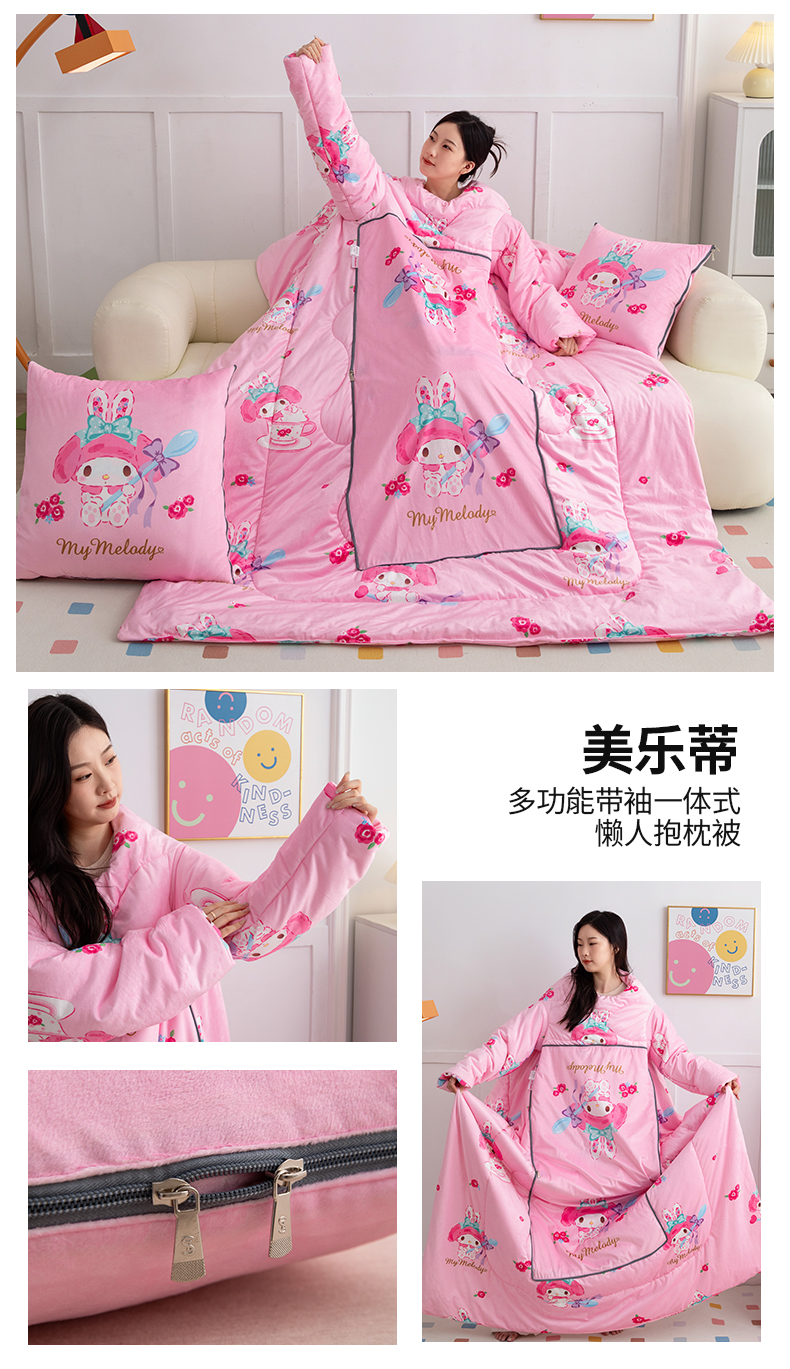 商品名称:照世家纺 2024新款卡通三丽鸥水晶绒多功能带袖一体式抱枕被 美乐蒂
