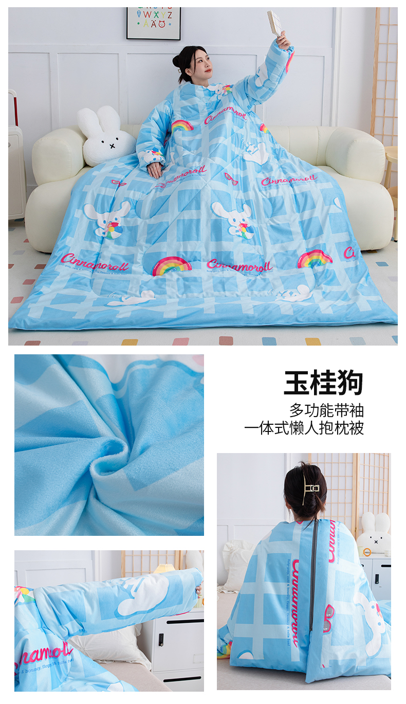 商品名称:照世家纺 2024新款卡通三丽鸥水晶绒多功能带袖一体式懒人被 玉桂狗