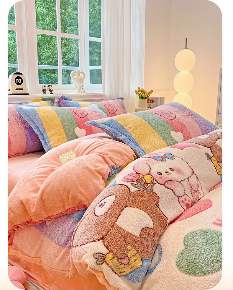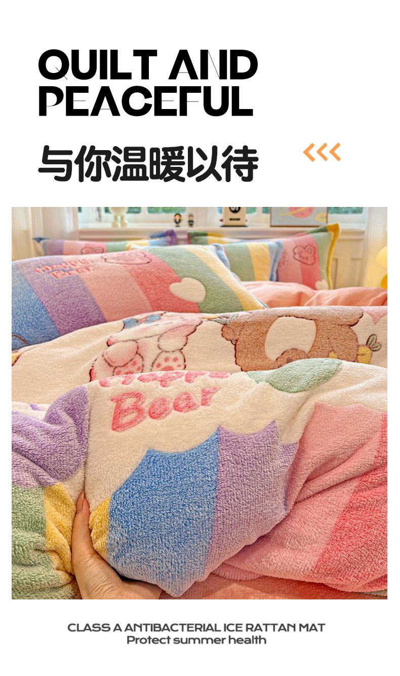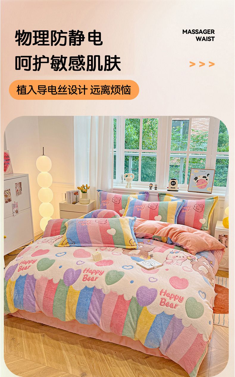 当前位置: 91家纺网 > 商品网购 > 床品套件 > 四件套 > 牛奶绒四件套 > 韩巢家纺 2024新款加厚雪花绒牛奶绒珊瑚绒四件套-新品(提供卖家秀) 七彩