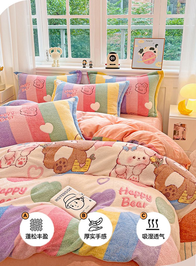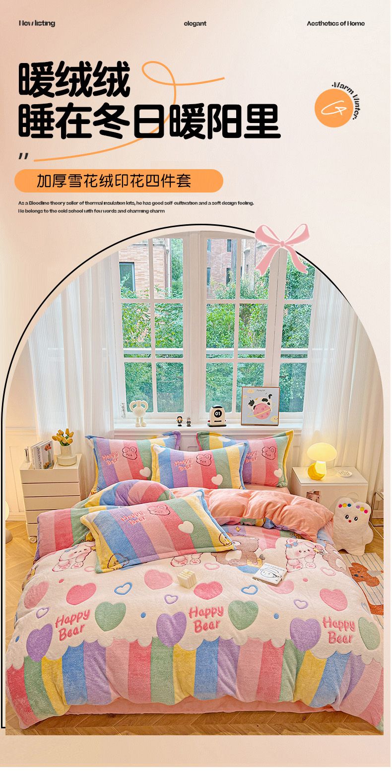 (总)韩巢家纺 2025新款高克重雪花绒牛奶绒四件套系列,郁金香,爱心熊(绿),巴丽娜,大白鹅,大耳朵兔,蝶雅,花花世界,灰色轨迹,米菲,七彩,田园兔(黄),小怪兽,幸运兔,英伦熊