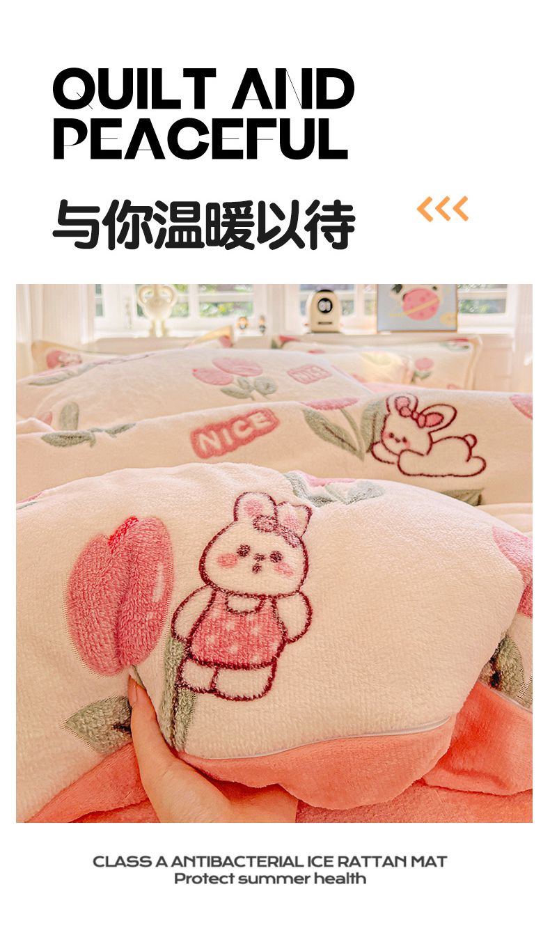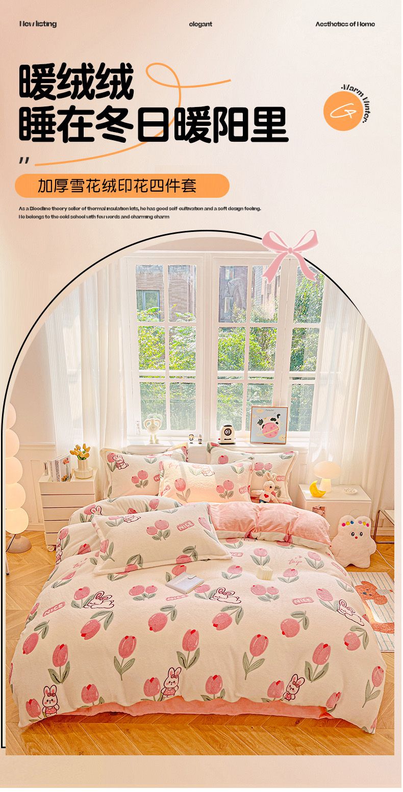 • 91家纺网 家纺一手货源 找家纺 (总)韩巢家纺 2025新款高克重雪花绒牛奶绒四件套系列,郁金香,爱心熊(绿),巴丽娜,大白鹅,大耳朵兔,蝶雅,花花世界,灰色轨迹,米菲,七彩,田园兔(黄),小怪兽,幸运兔,英伦熊