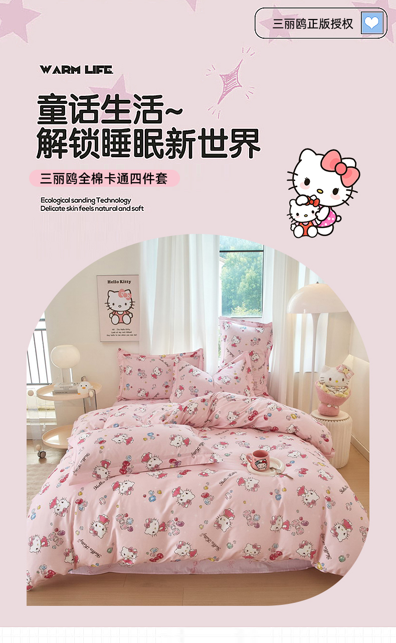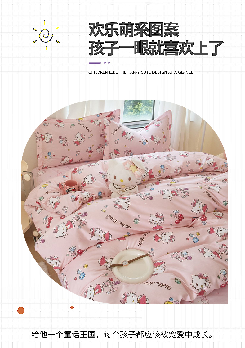 当前位置: 91家纺网 > 商品网购 > 床品套件 > 四件套 > 全棉普通四件套 > 蘭菲家纺 2024新款全棉小版卡通三丽鸥四件套 小甜心