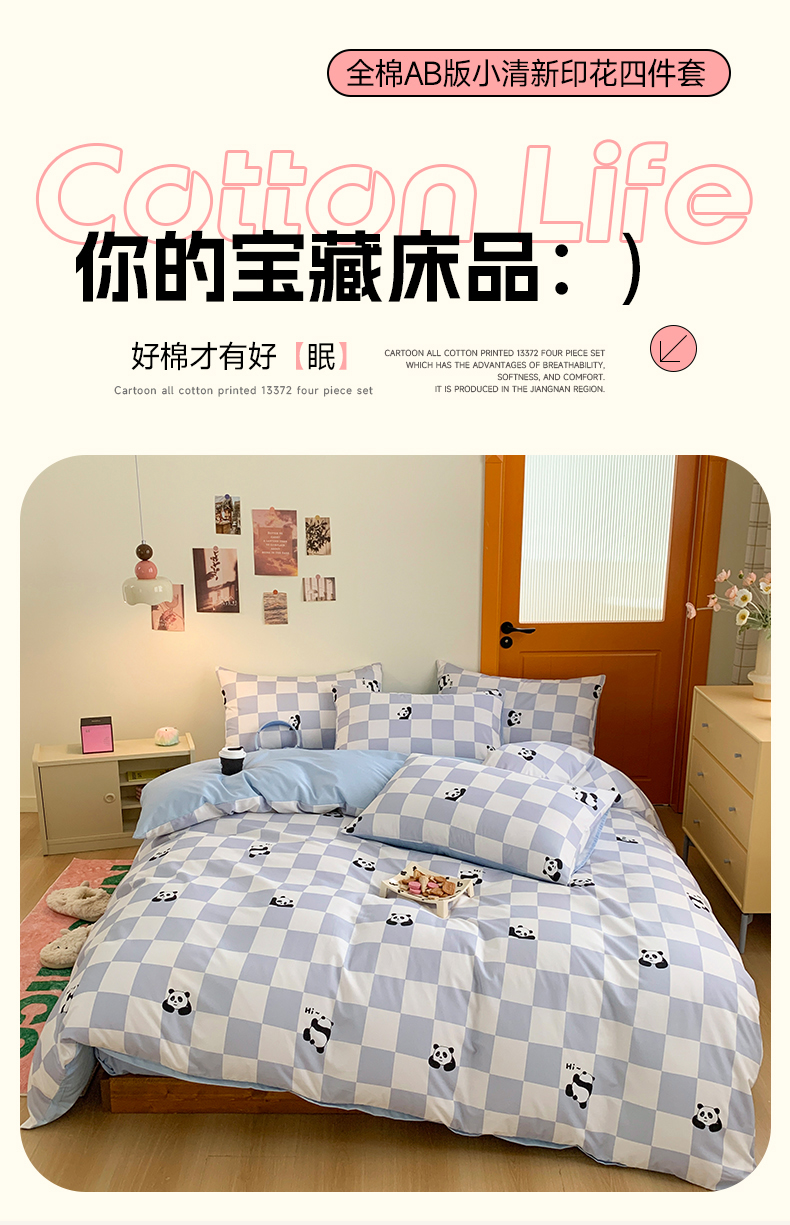 富瑞阁 2024爆款13070全棉小清新印花四件套三件套 海盐团子