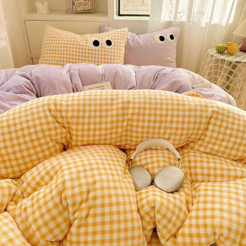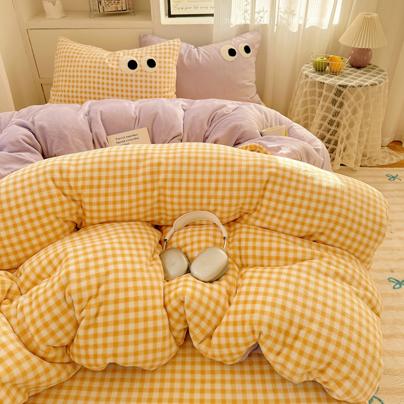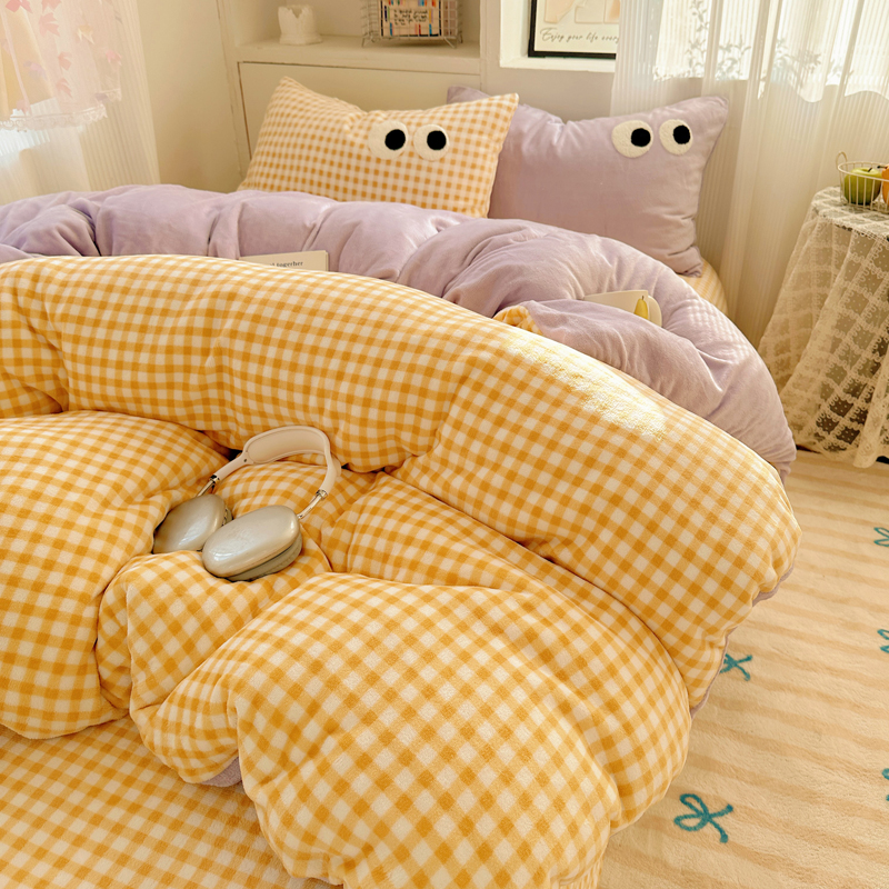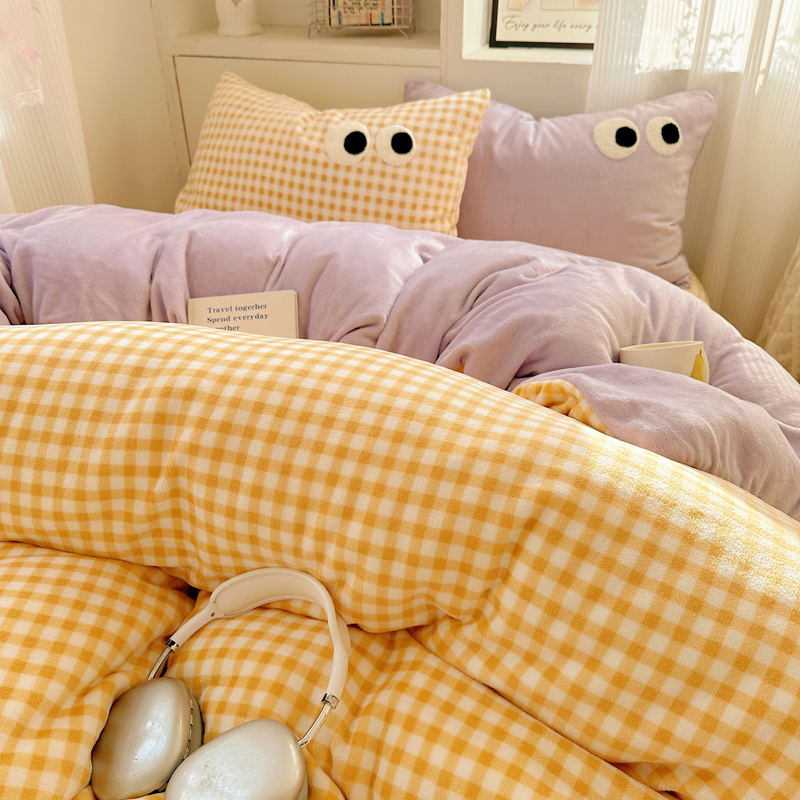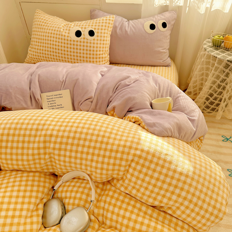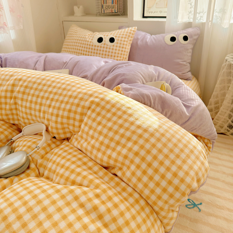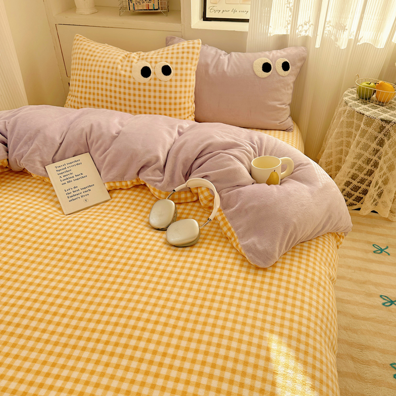 当前位置: 91家纺网 > 商品网购 > 床品套件 > 四件套 > 牛奶绒四件套 > 慕尚 2025新款可爱大眼睛蝴蝶结牛奶绒四件套 芭比风铃紫