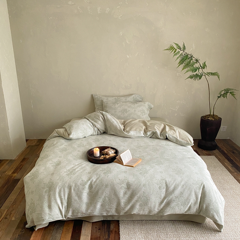 (总)旷野 2025新款空气层提花皱皱纱碎花边工艺款四件套-竹梦,竹梦