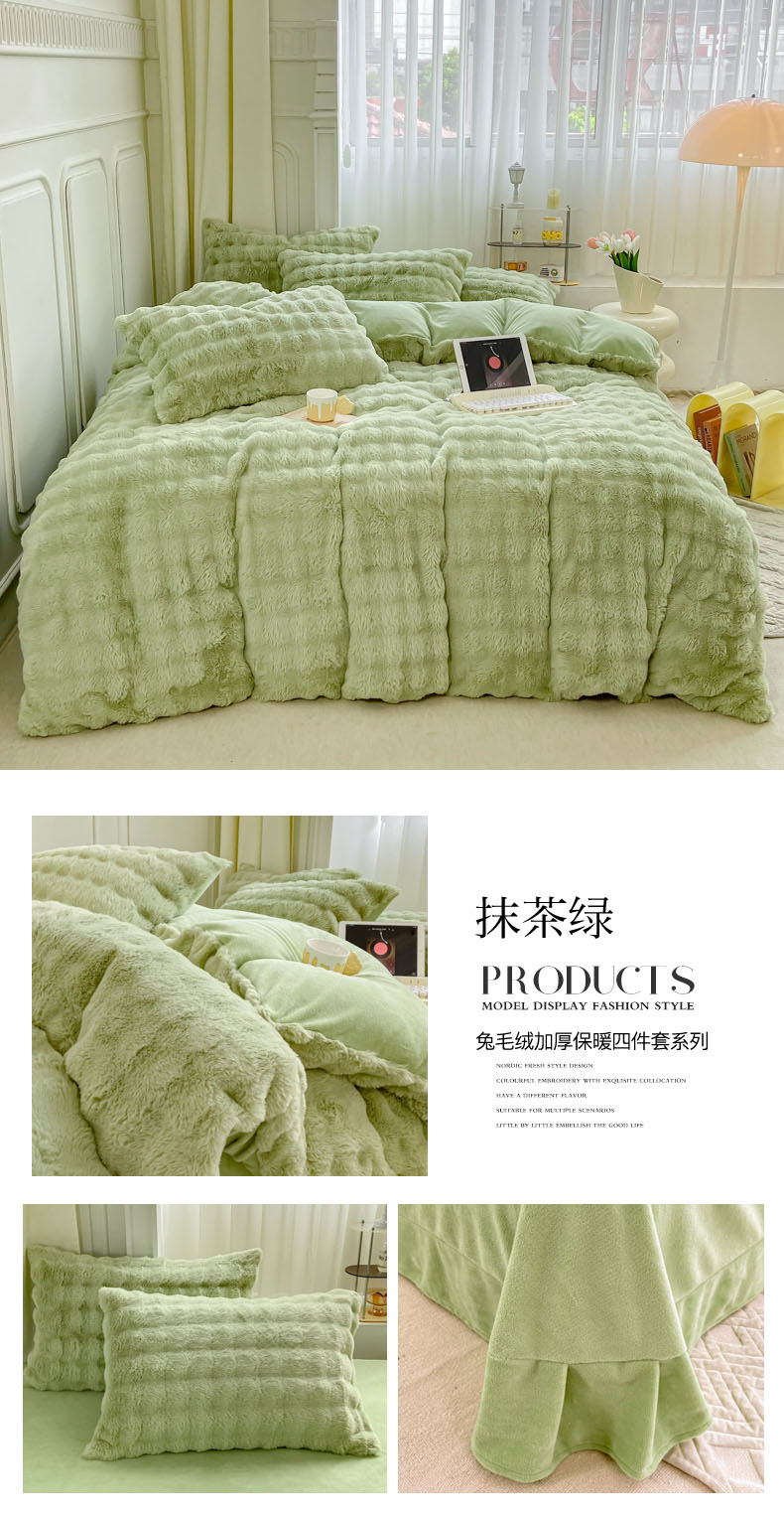 商品名称:昊川家纺 2025新款兔毛绒泡泡四件套兔毛 抹茶绿