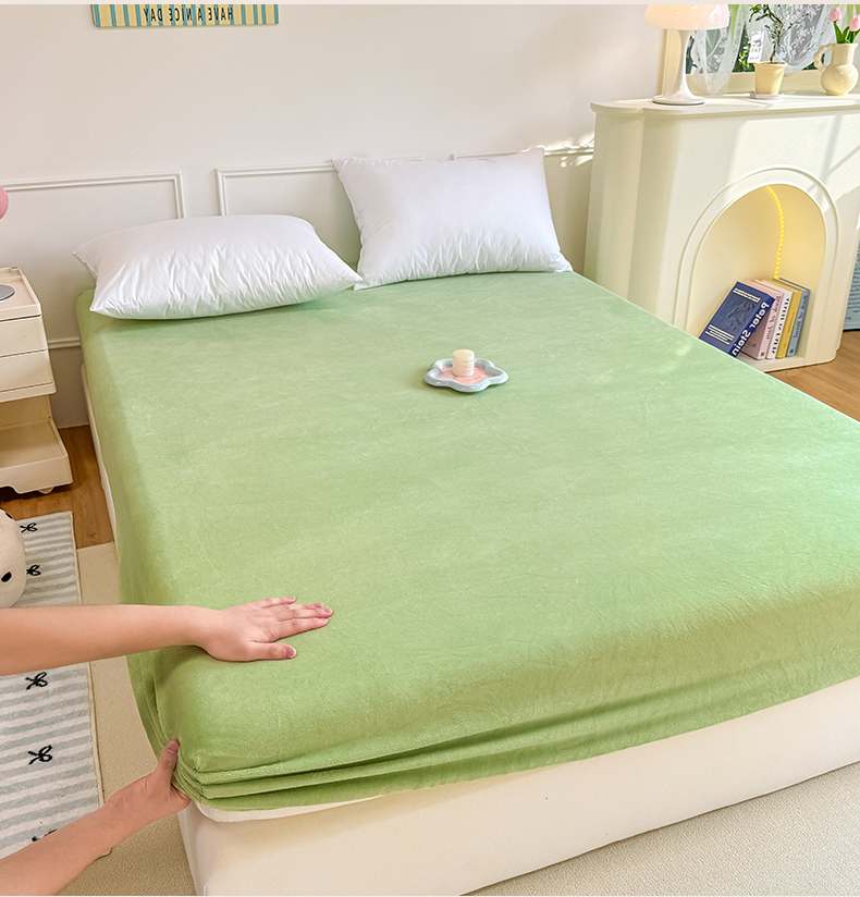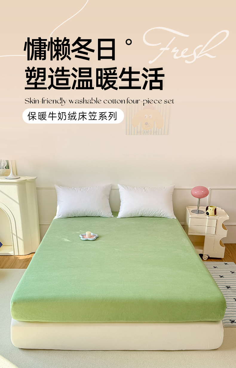 (总)觅妮家纺 2025新款全消光200g保暖牛奶绒纯色简约款床笠,芭比粉,宾利蓝,果绿,黑灰,灰色,咖色,浅粉,浅灰,雾霾蓝