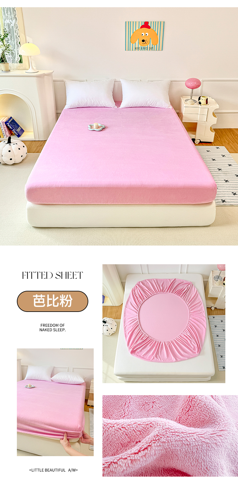 商品名称:觅妮家纺 2025新款全消光200g保暖牛奶绒纯色简约款床笠 芭比粉