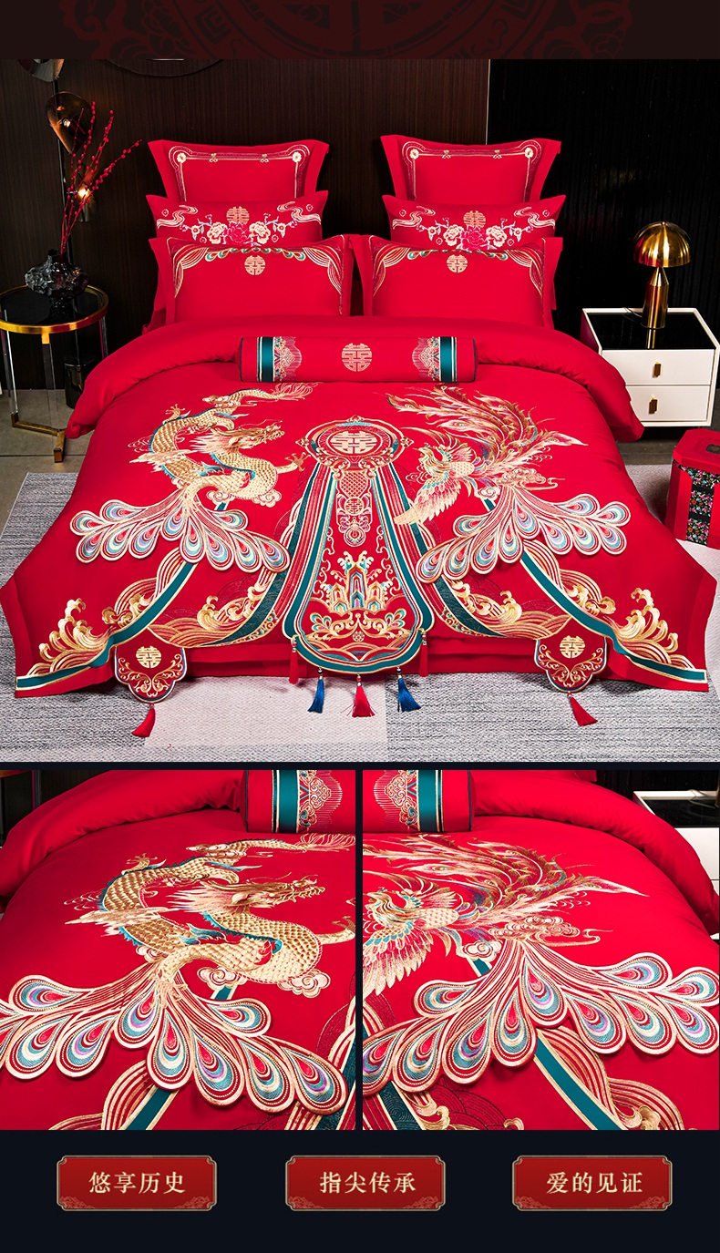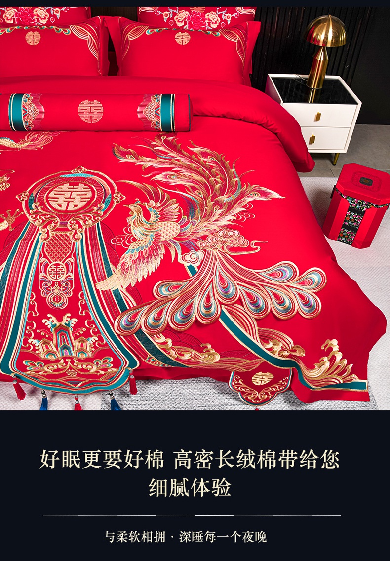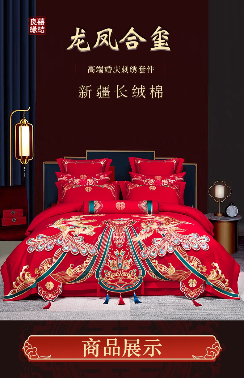 (总)皇潮婚庆馆 新款新疆长绒棉高端婚庆刺绣四件套,龙凤合玺,祥龙禧凤
