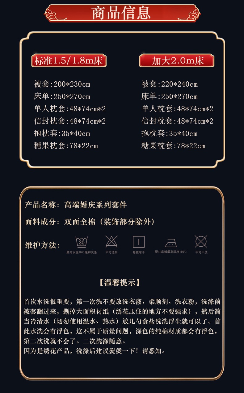 (总)皇潮婚庆馆 2025新款A类布款全棉刺绣婚庆四件套系列,花辰喜盈,百子送喜,龙悦凤鸣,喜事连连,喜迎鸿运
