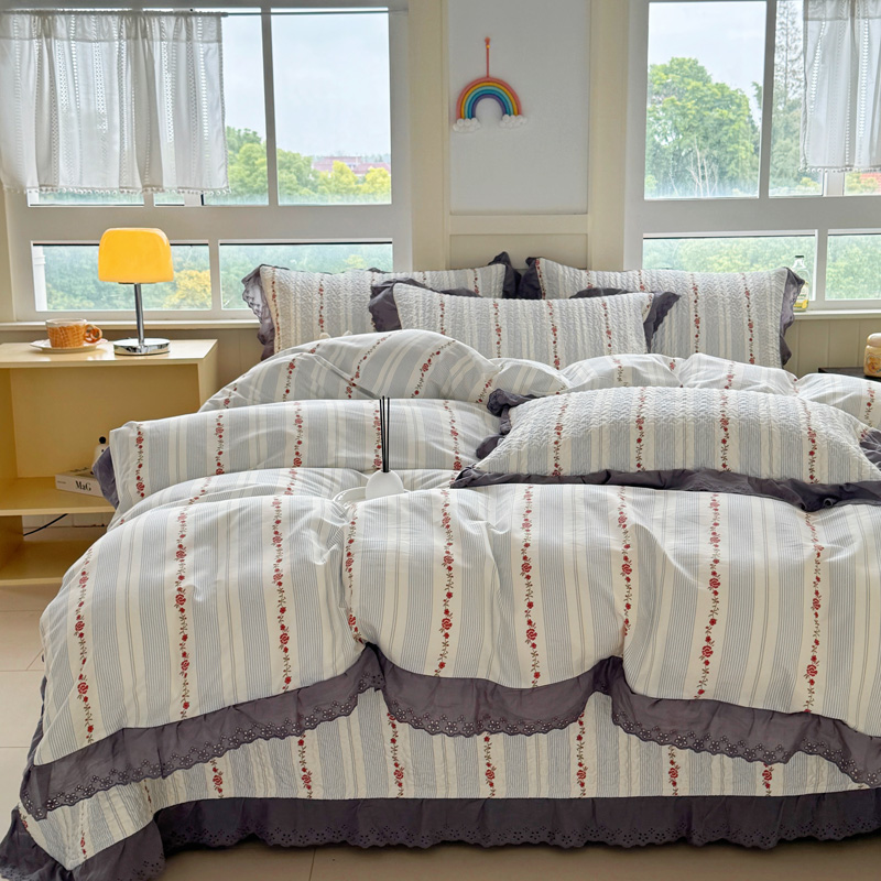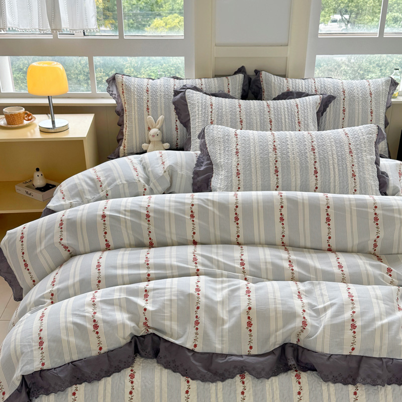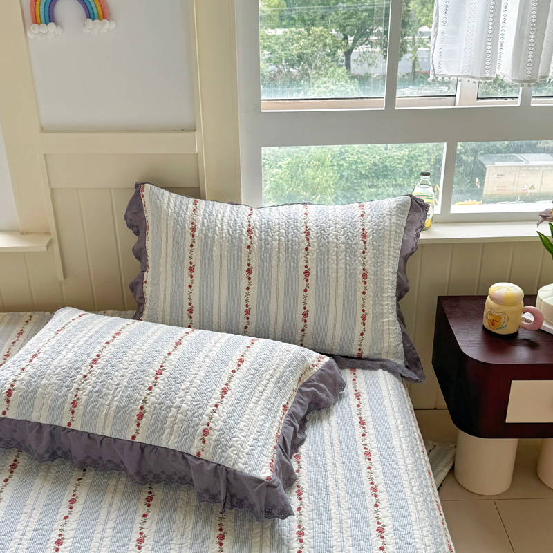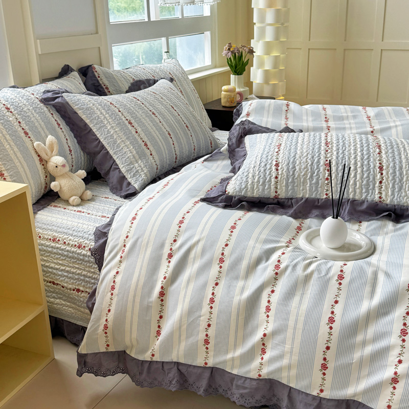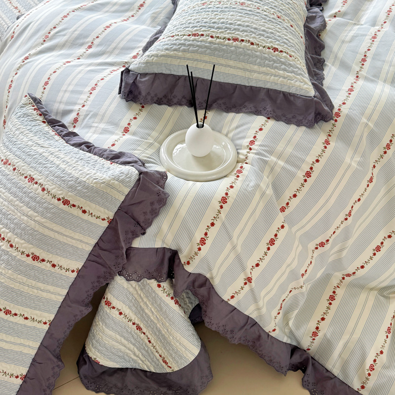 添越 2024小清新韩版蕾丝款花边纯棉夹棉床盖三件套全棉爱意时光蕾丝款,爱意时光蕾丝款