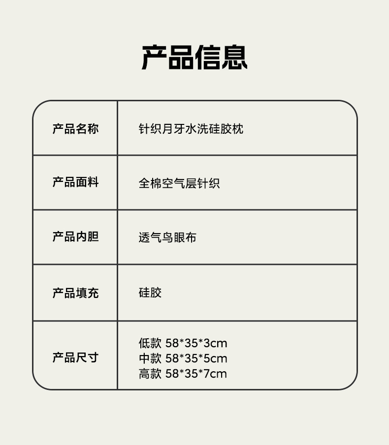 商品名称:(总)伟邦枕芯 2024新款针织月牙水洗硅胶枕
