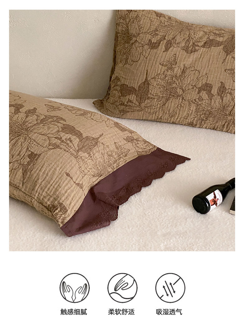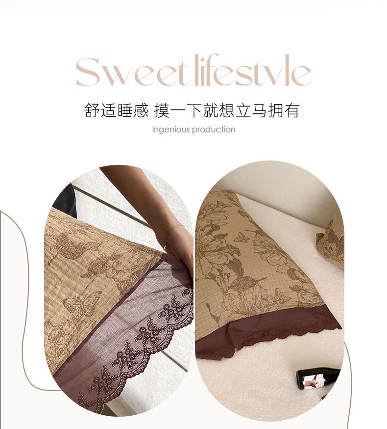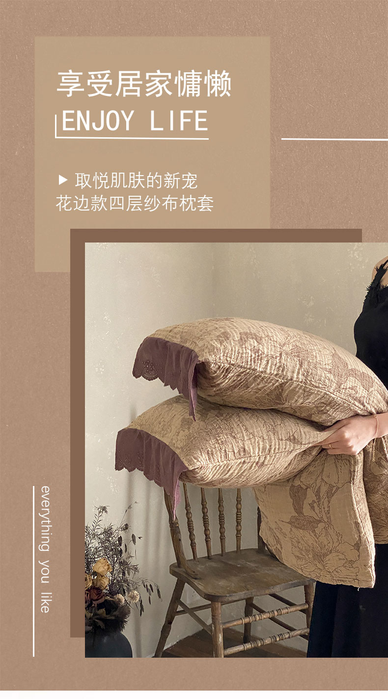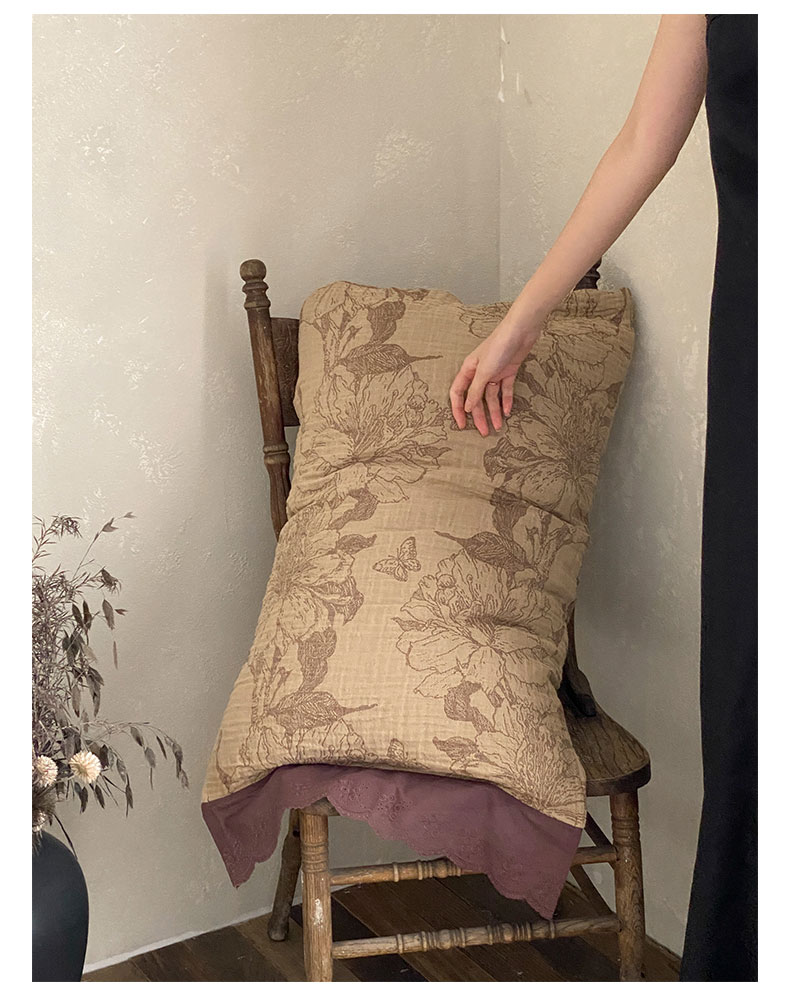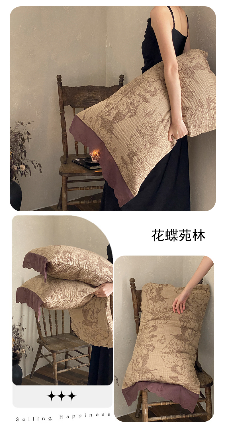 麻依 2024新款法式四层纱布枕套花边款 花蝶苑林