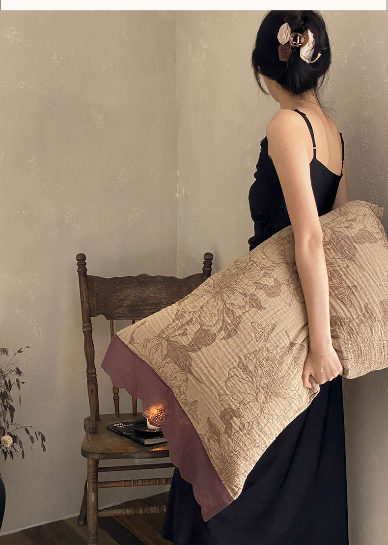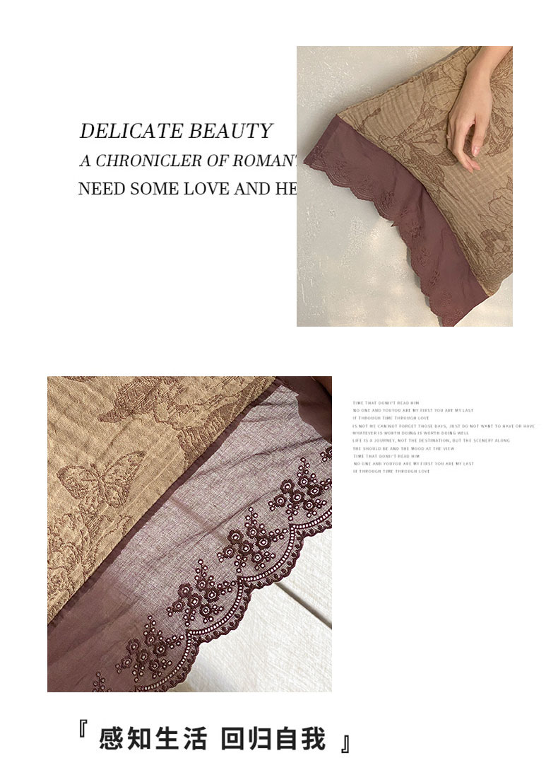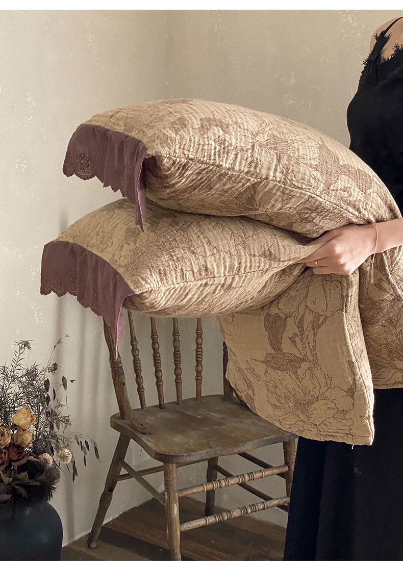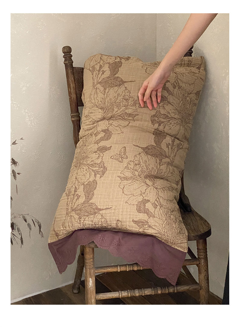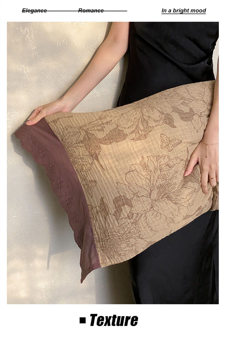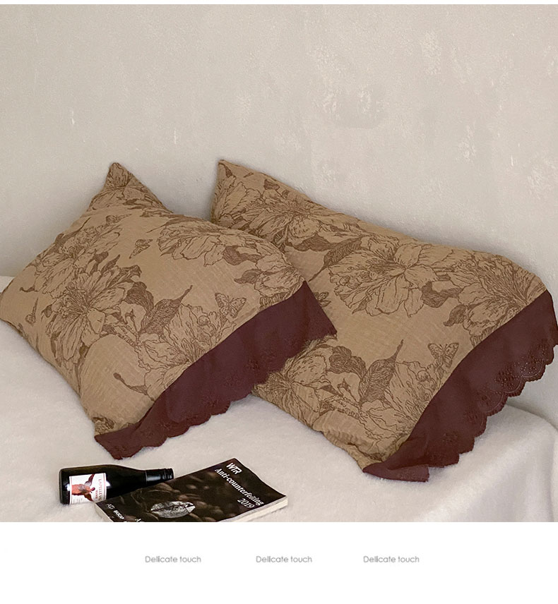 麻依 2024新款法式四层纱布枕套花边款 花蝶苑林