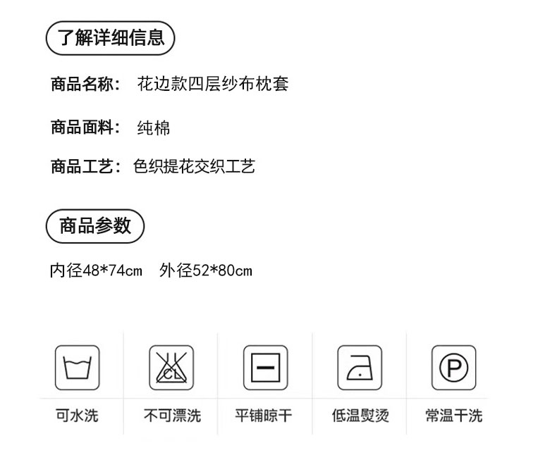 商品名称:麻依 2024新款法式四层纱布枕套花边款 花蝶苑林