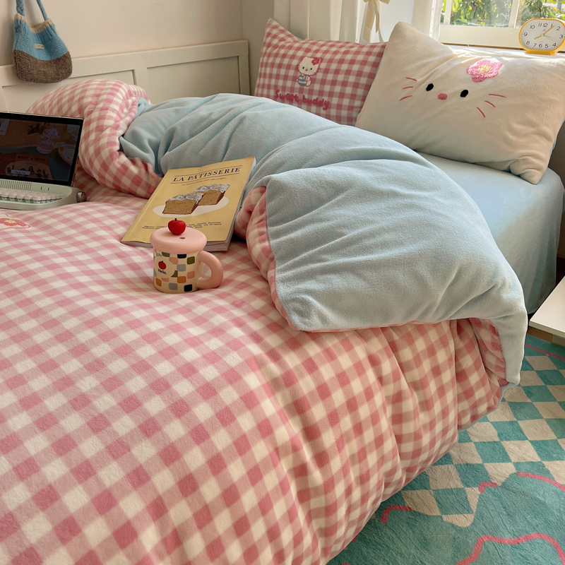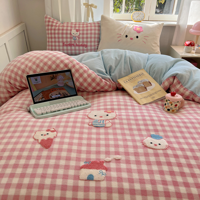 (总)桃喜 2025新款秋冬牛奶绒床笠三件套(会员-3),美拉德甜点,三个小伙伴,三只小猫,圣诞雪人,小猫的早八时刻,组合图