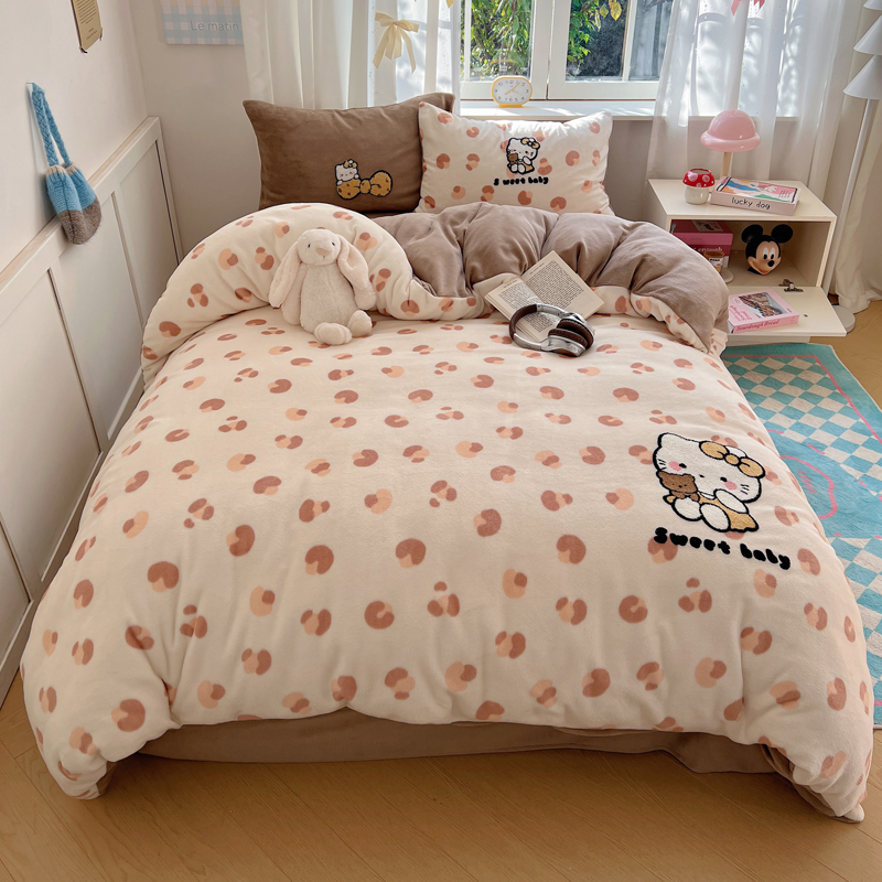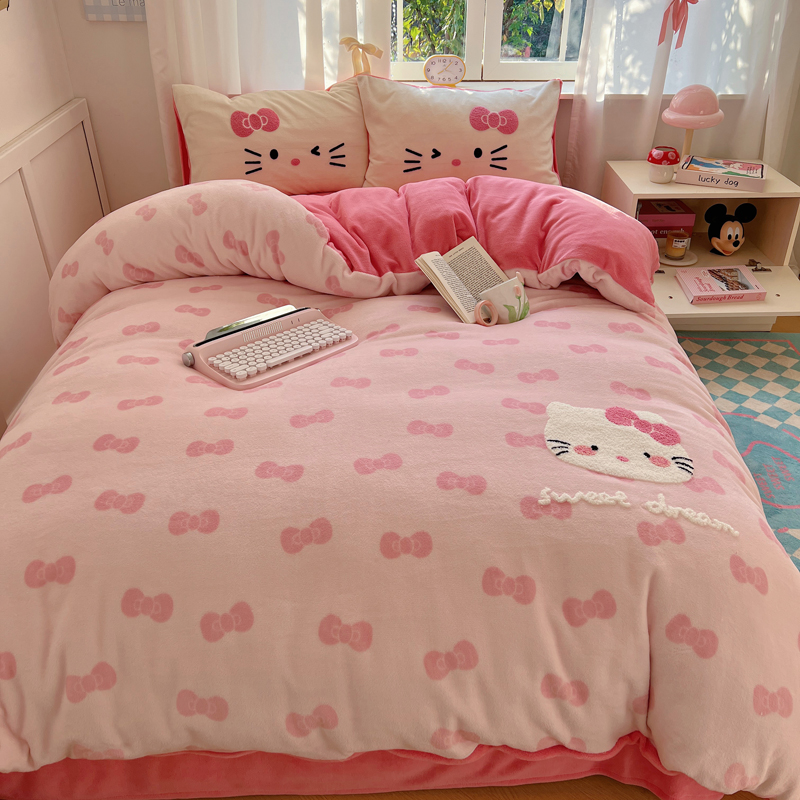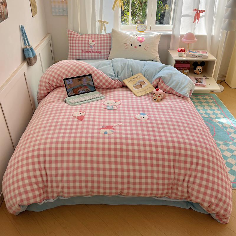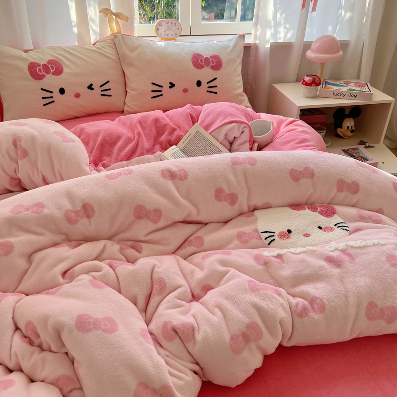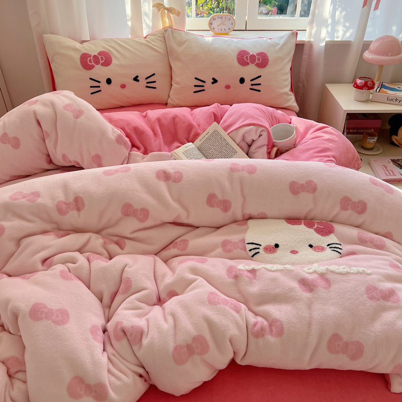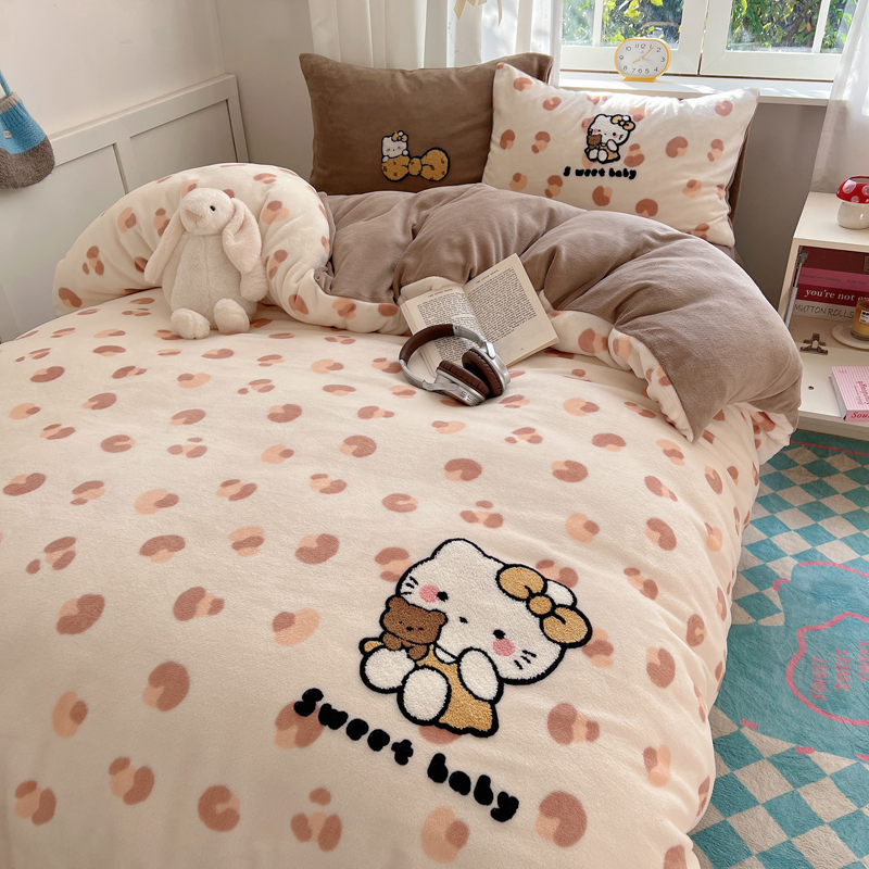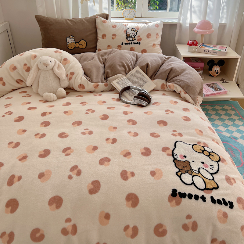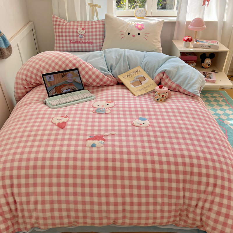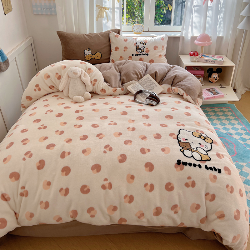 (总)2024新款牛奶绒猫咪毛巾绣系列四件套