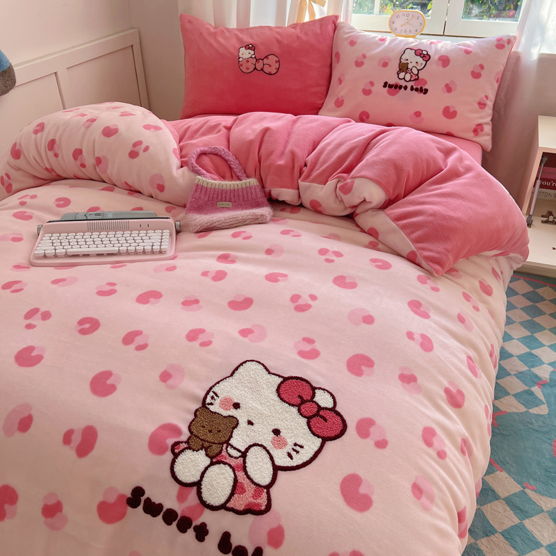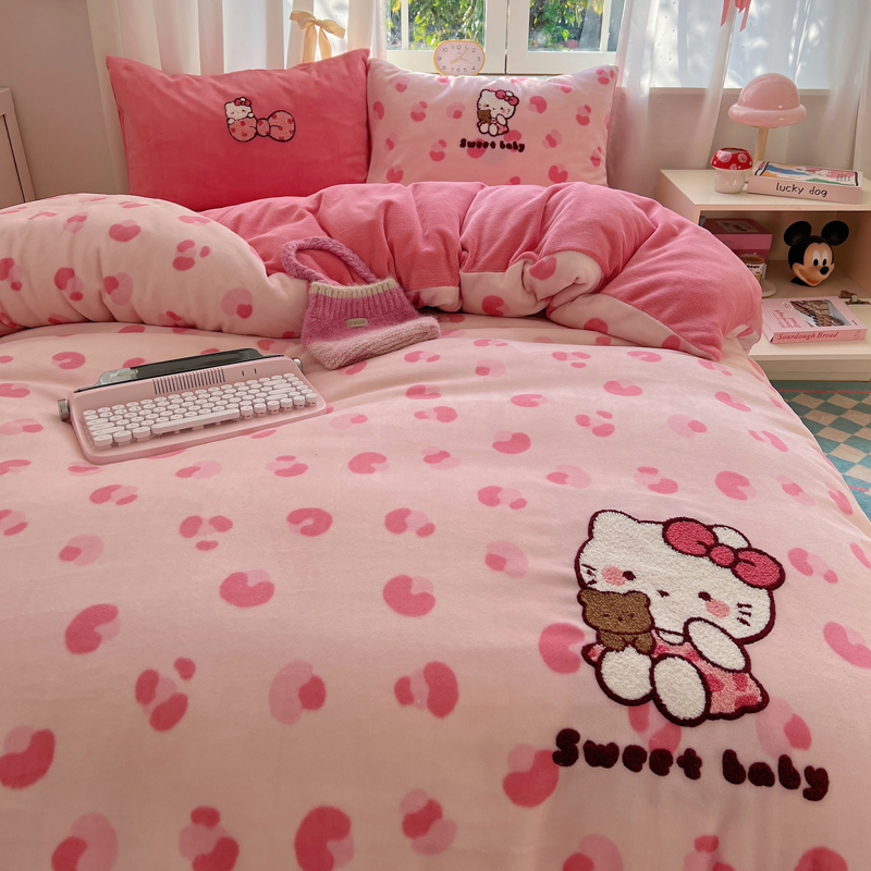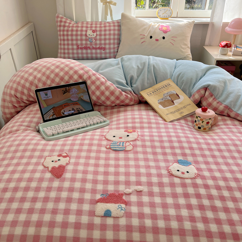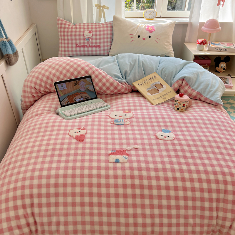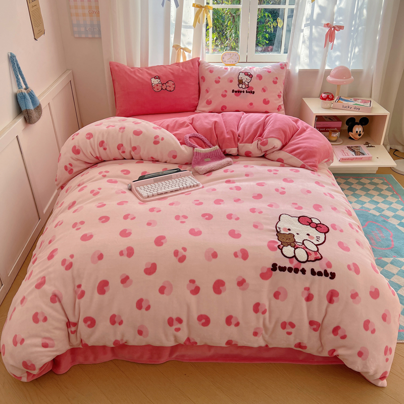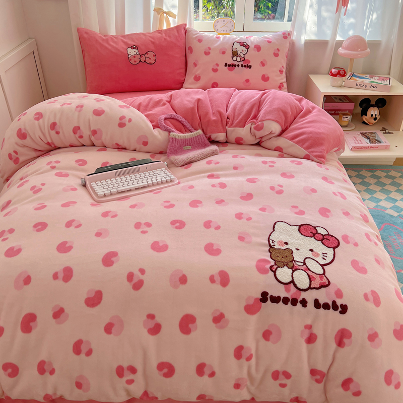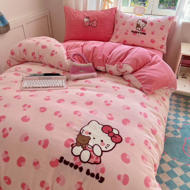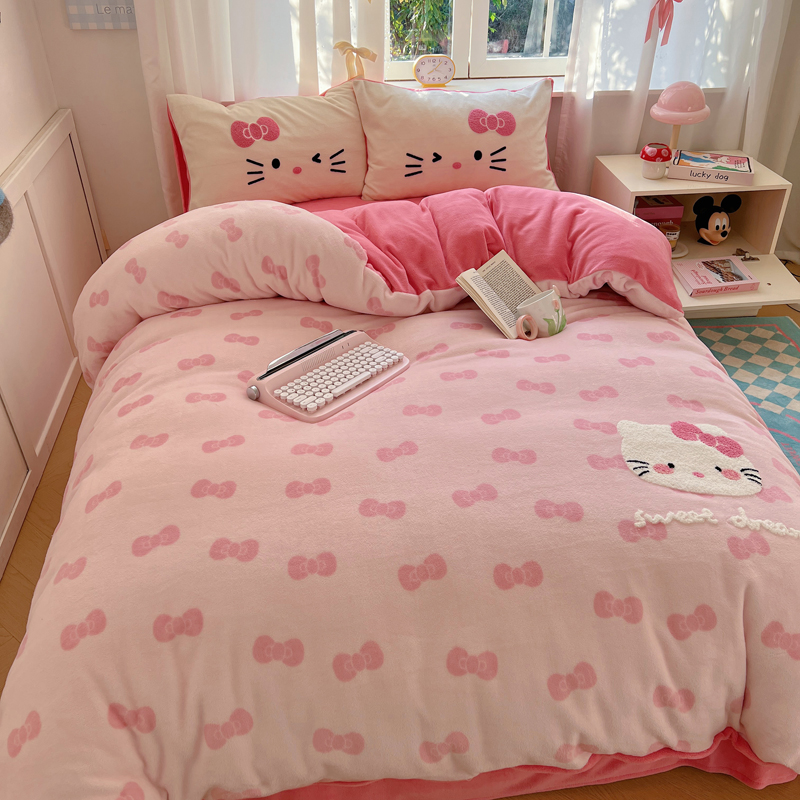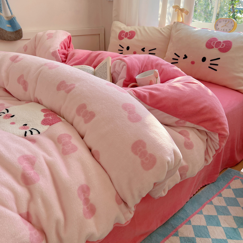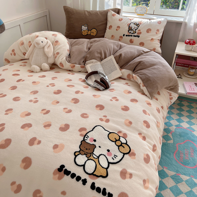 (总)2024新款牛奶绒猫咪毛巾绣系列四件套
