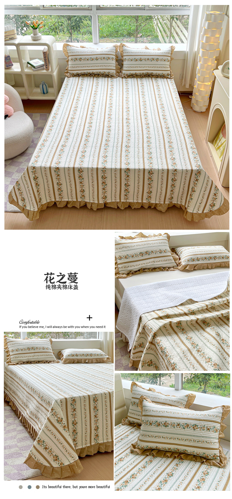 2024新款13372全棉斜纹夹棉绗缝纯棉花边床盖 花之蔓