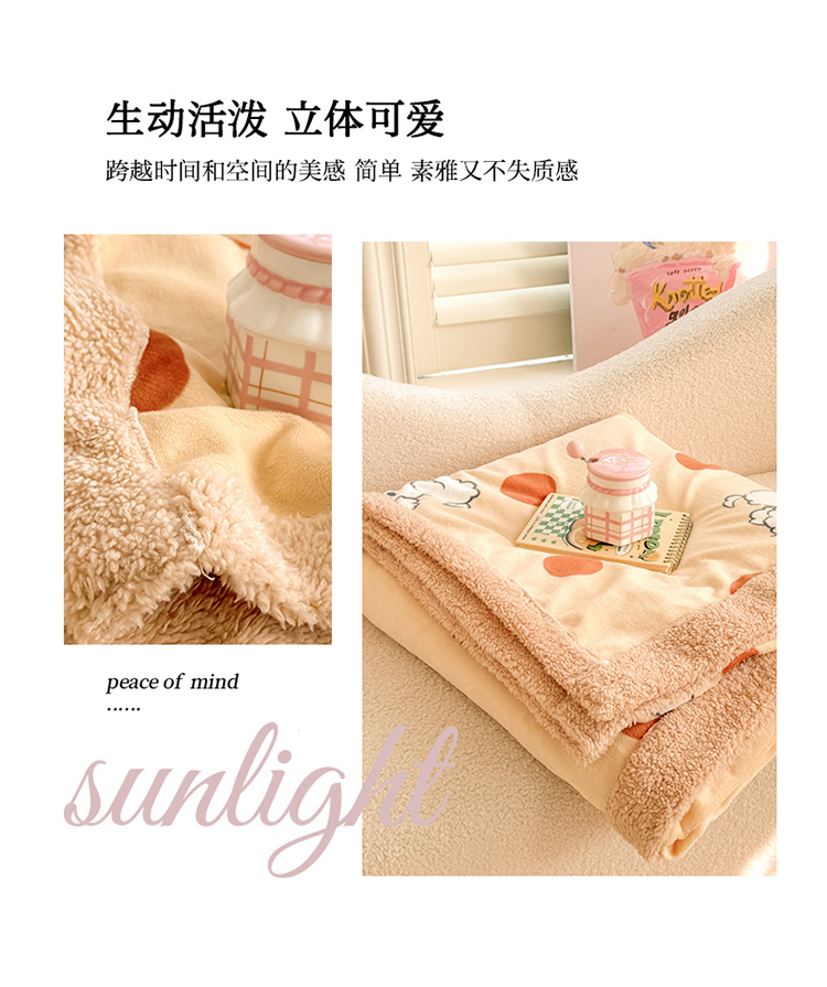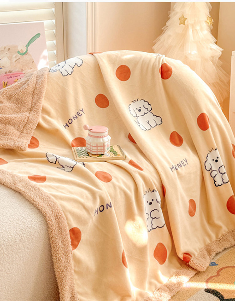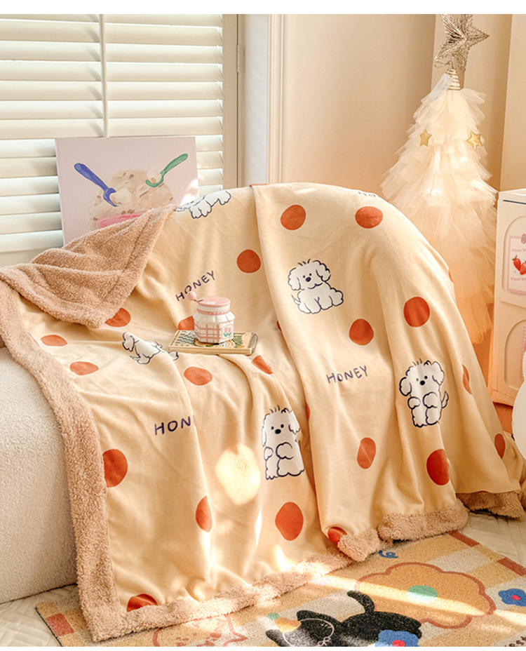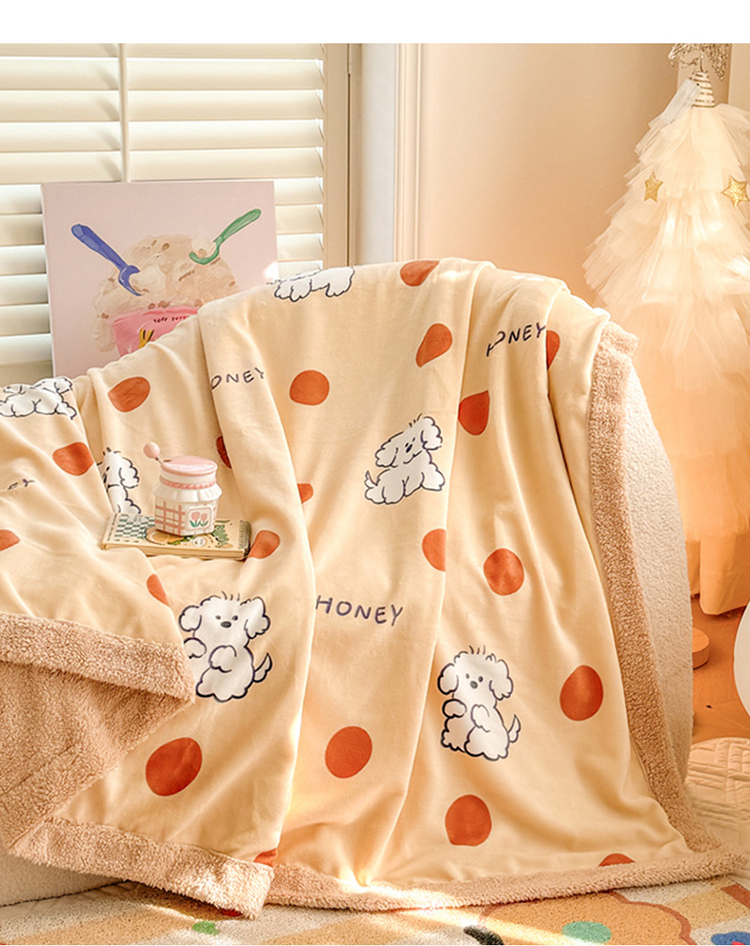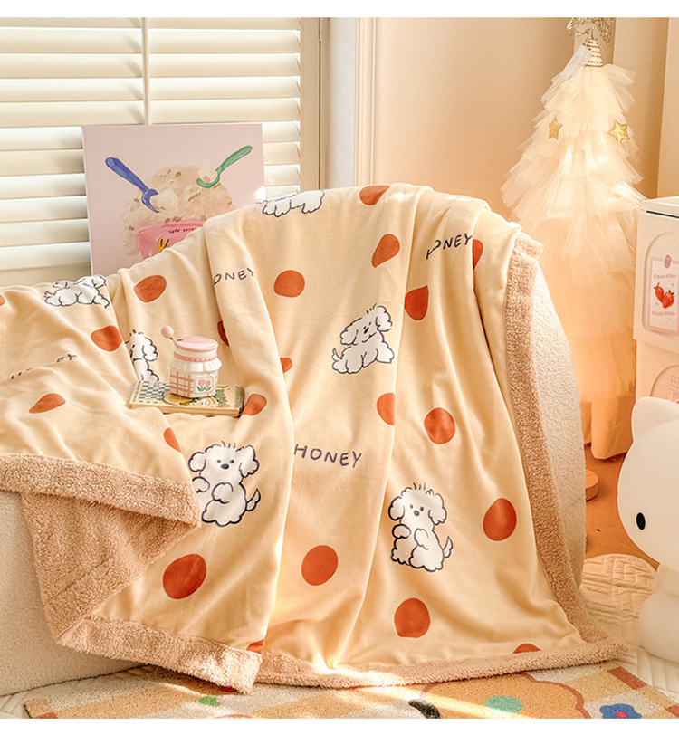 眷恋家纺 2024新款高克重牛奶绒印花羊羔绒毛毯毯子 咖啡狗