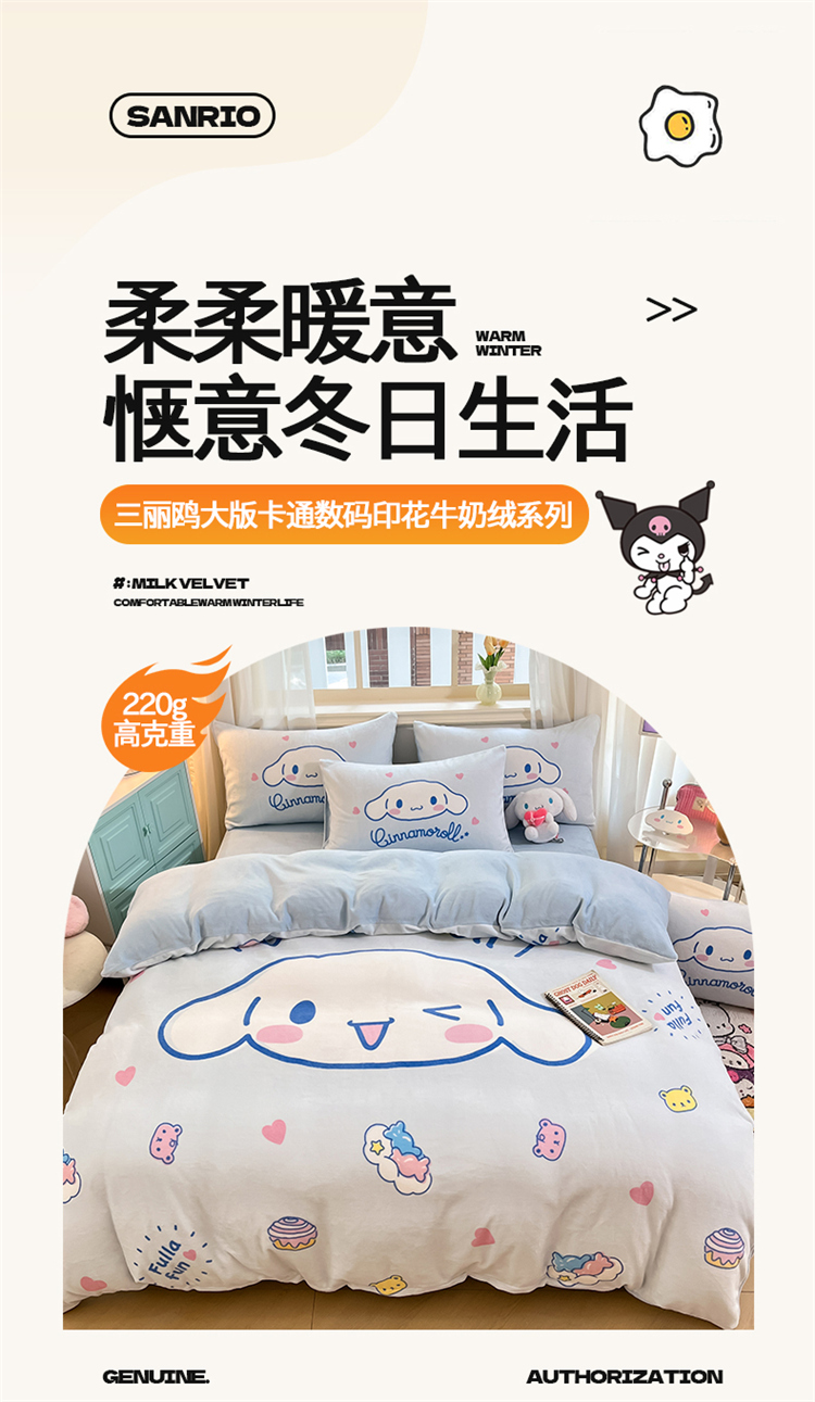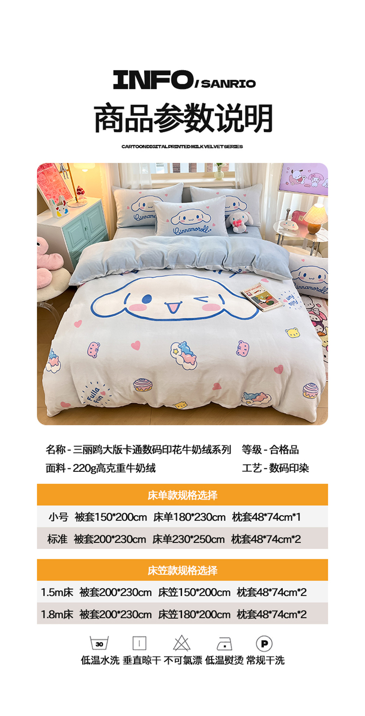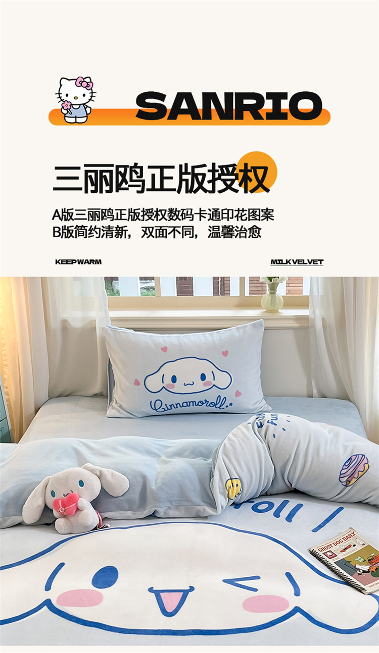 当前位置: 91家纺网 > 商品网购 > 床品套件 > 四件套 > 牛奶绒四件套 > A类母婴级库洛米美乐蒂三丽鸥正版授权卡通儿童牛奶绒双面牛奶绒四件套珊瑚绒四件套 绒大版-R开心大耳狗