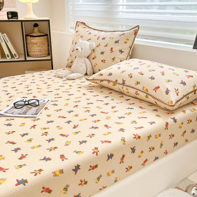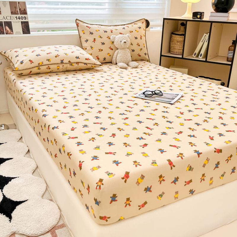 (买家秀 不断货)A类母婴级全棉纯棉床单纯棉全棉床笠双层纱床笠床罩卡通床笠儿童床垫套保护罩--单床笠 开心派对(床笠)