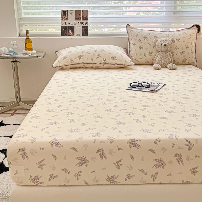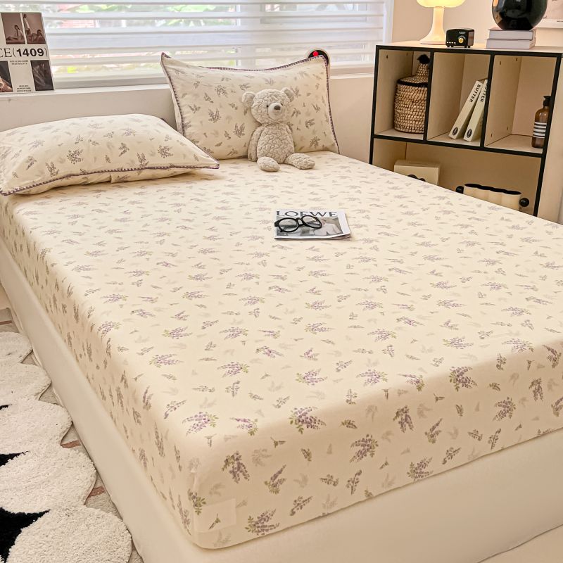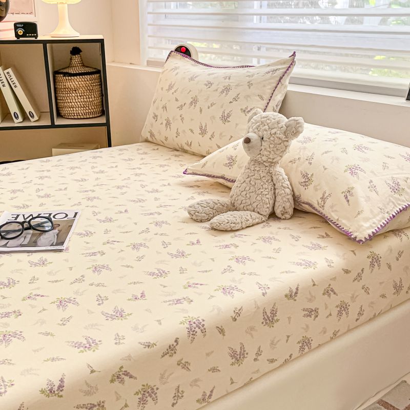(买家秀 不断货)A类母婴级全棉纯棉床单纯棉全棉床笠双层纱床笠床罩卡通床笠儿童床垫套保护罩--单床笠 紫风铃(床笠)