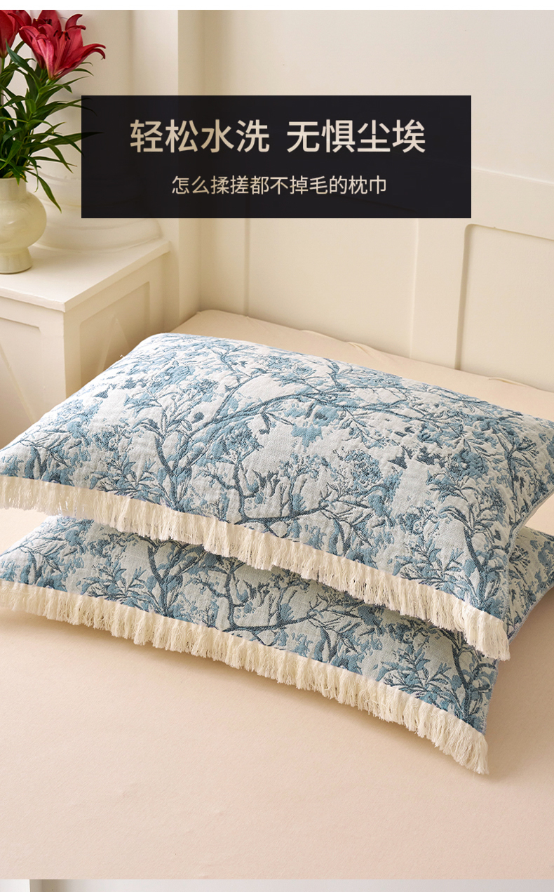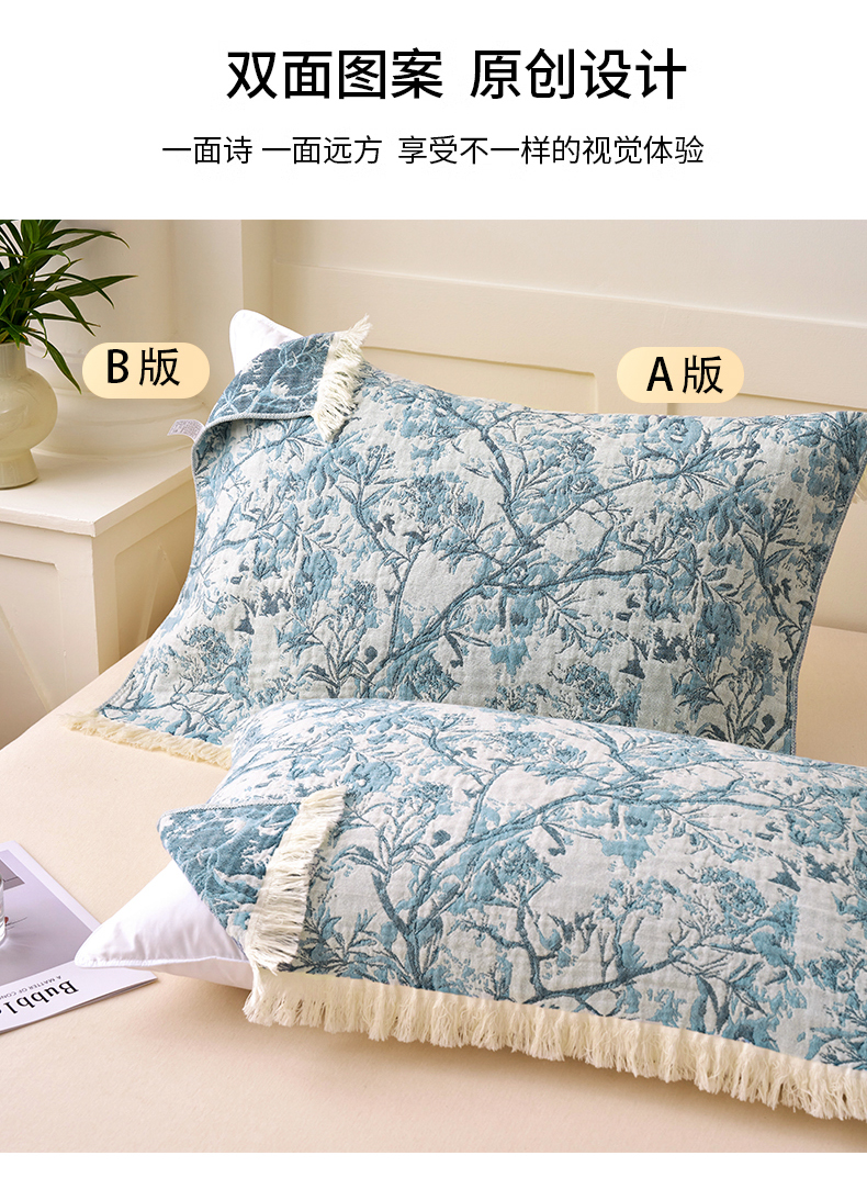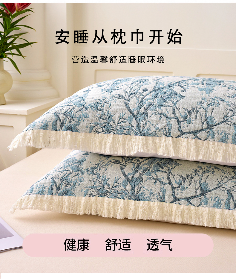 • 91家纺网 家纺一手货源 找家纺 A类抗菌母婴级全棉纯棉三层纱多功能枕巾多层纱布纱巾宽边枕巾无印风流苏纱布枕巾52x75cm/对 莉莉丝