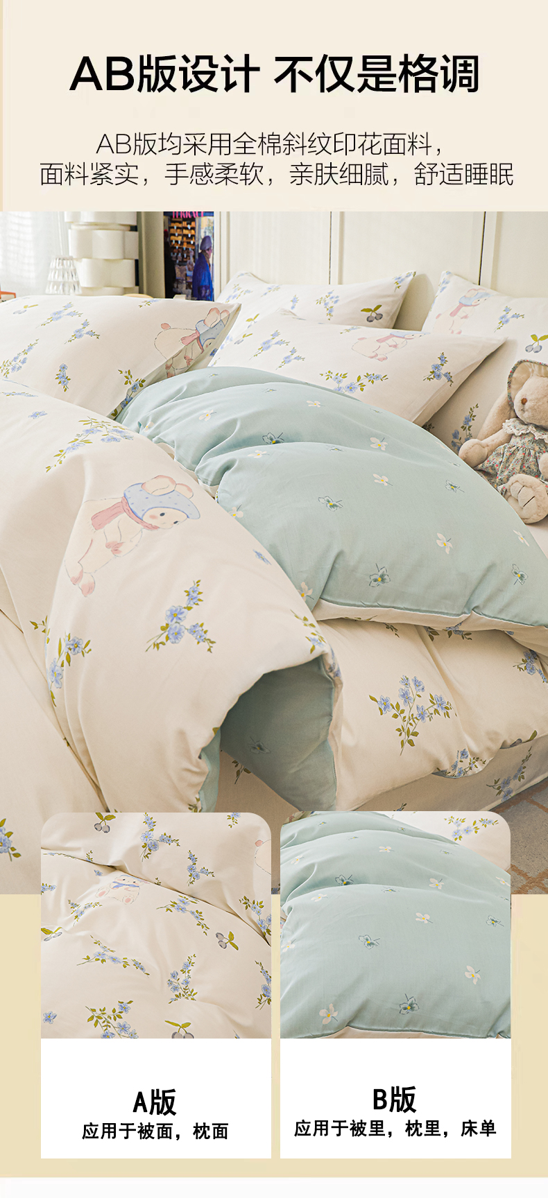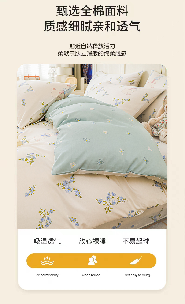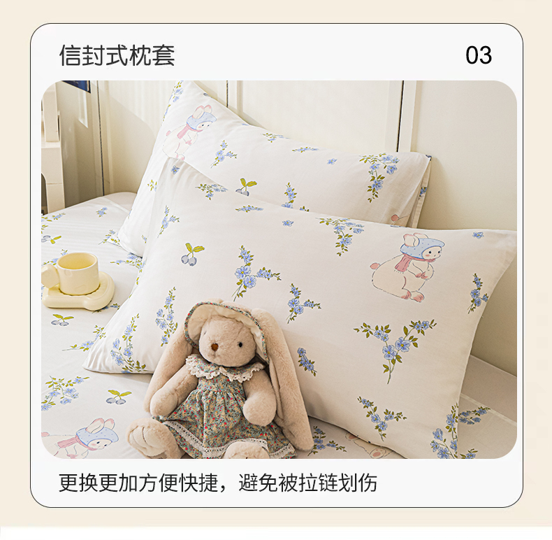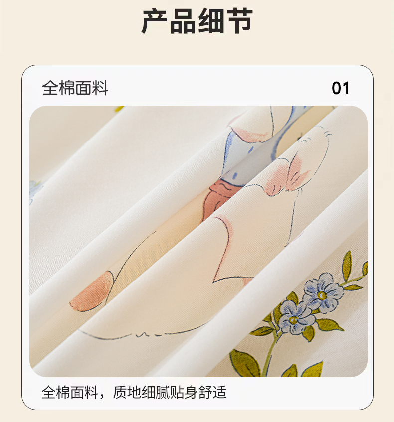 当前位置: 91家纺网 > 商品网购 > 床品套件 > 四件套 > 全棉普通四件套 > 金鑫汇家纺 2025新款全棉印花四件套 花丛兔