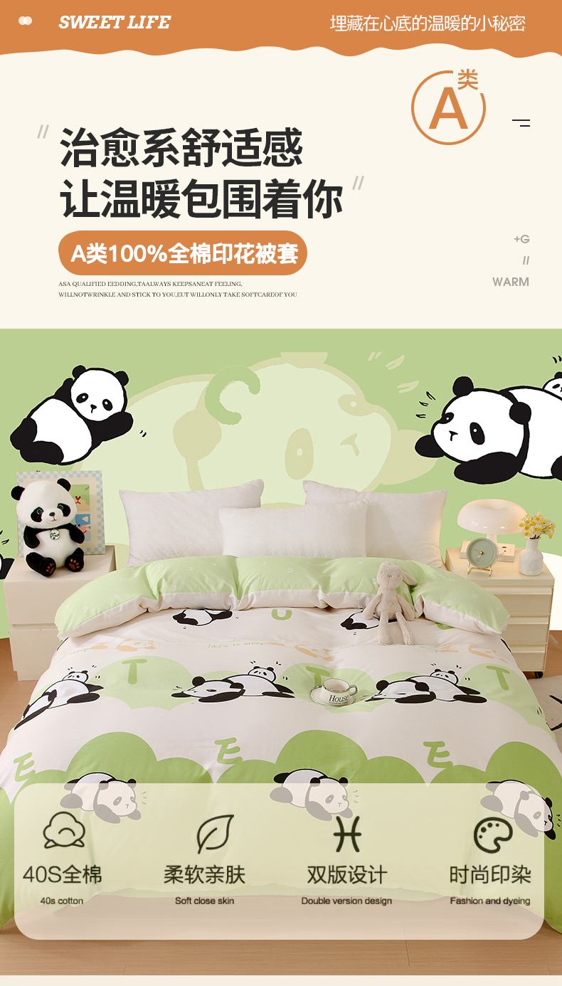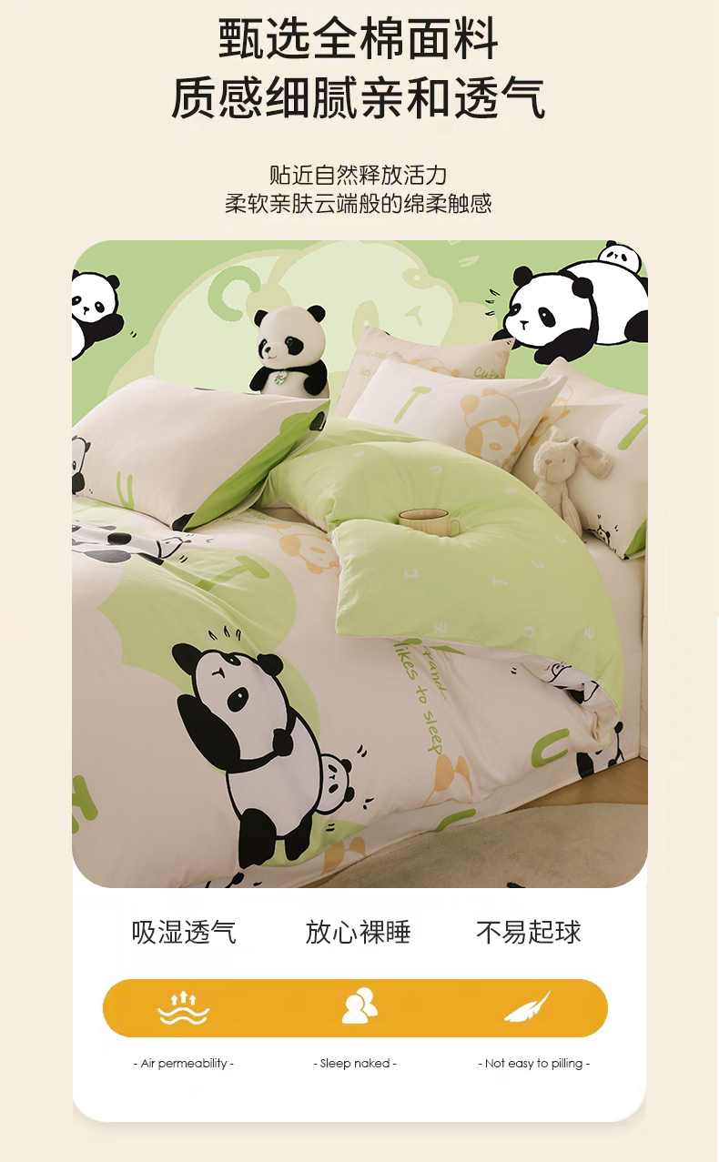 商品名称:金鑫汇家纺 2025新款全棉印花单被套 可爱熊猫