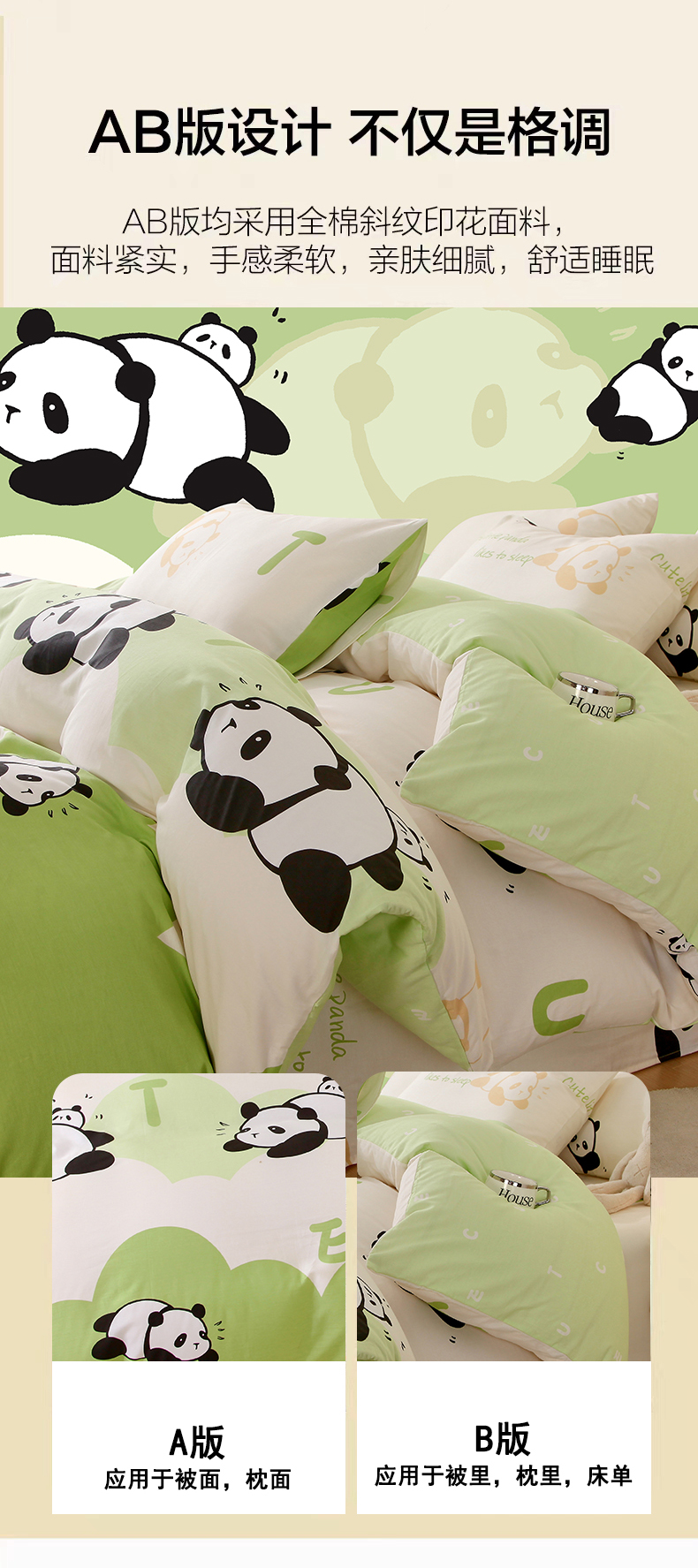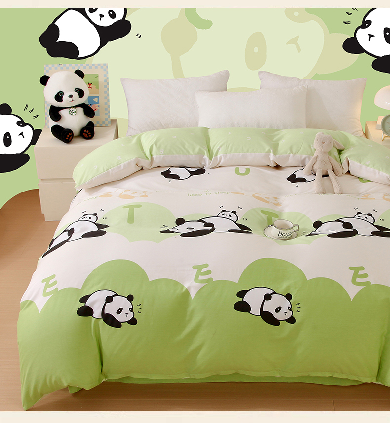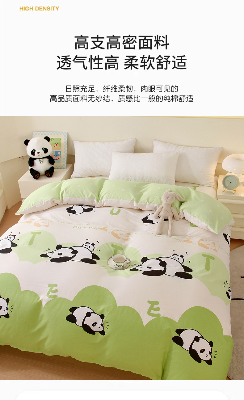金鑫汇家纺 2025新款全棉印花单被套 可爱熊猫