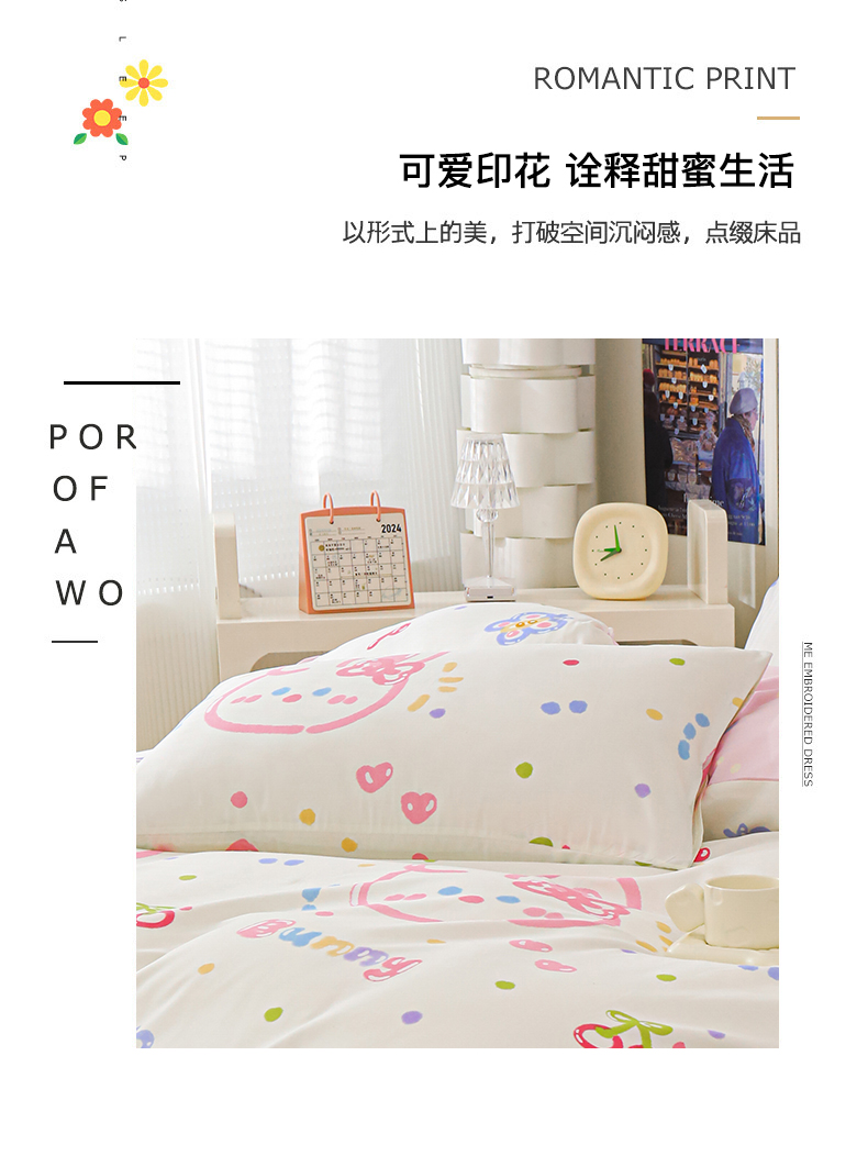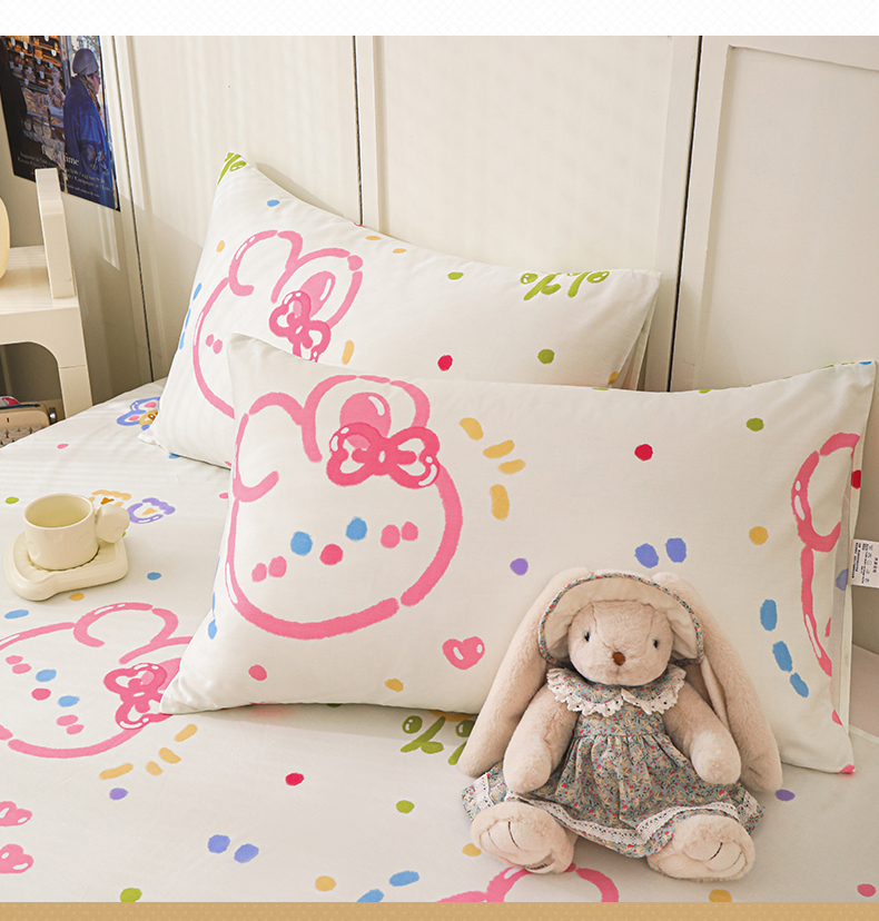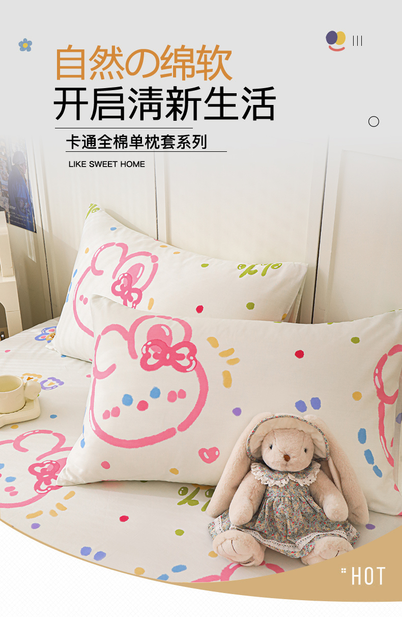 金鑫汇家纺 2025新款全棉印花单枕套 奇趣小兔