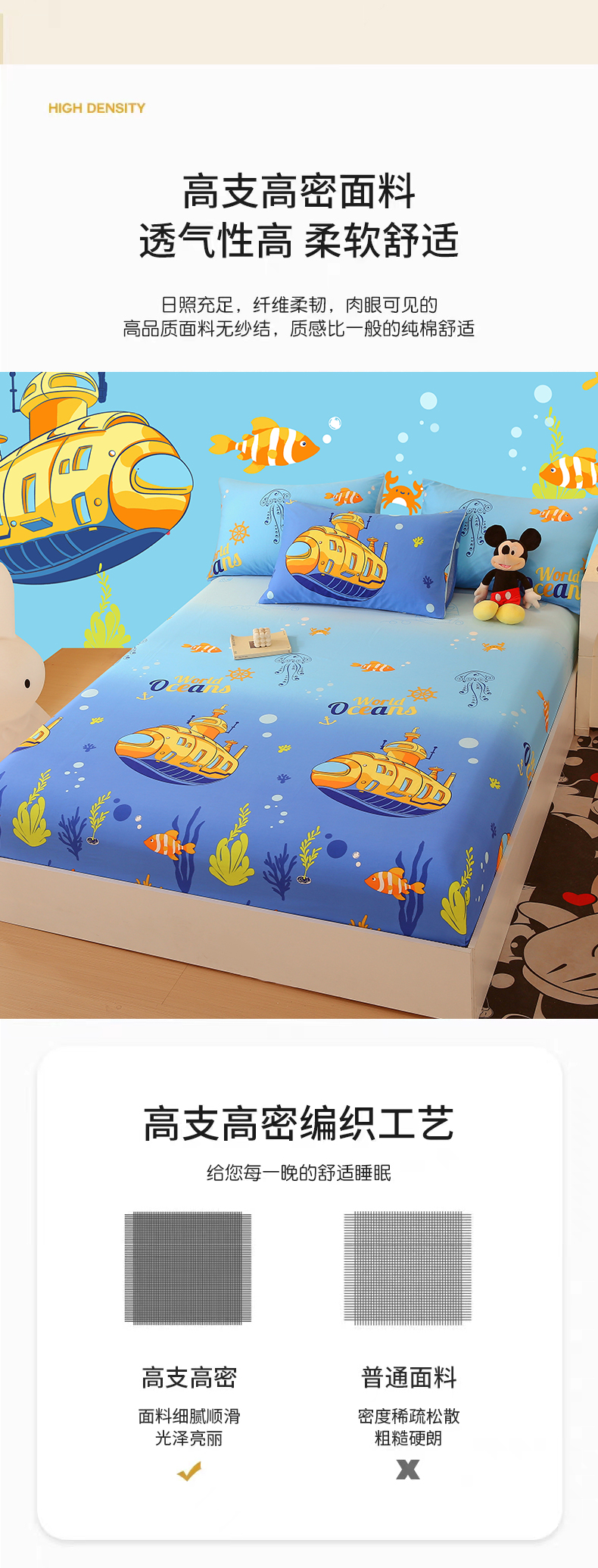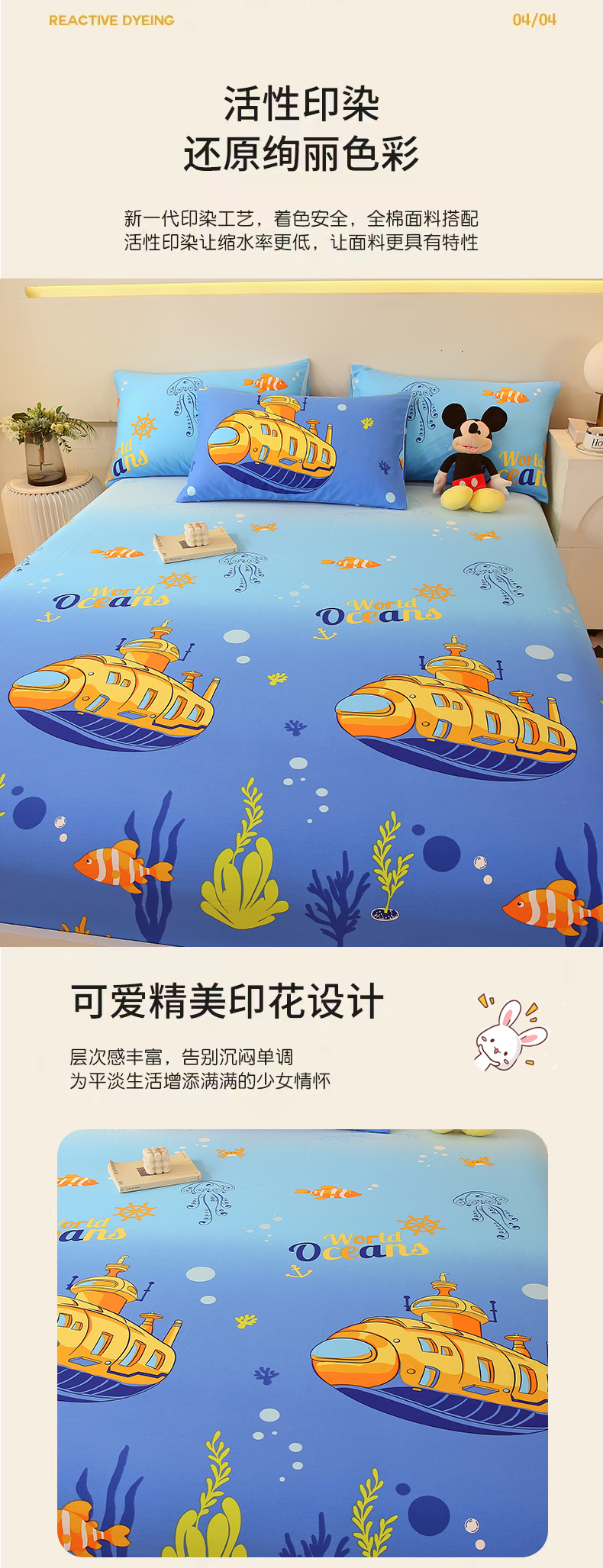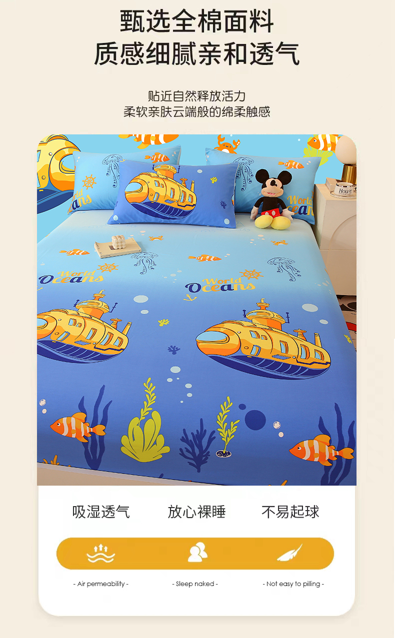商品名称:金鑫汇家纺 2025新款超好卖全棉单床笠 海底探秘