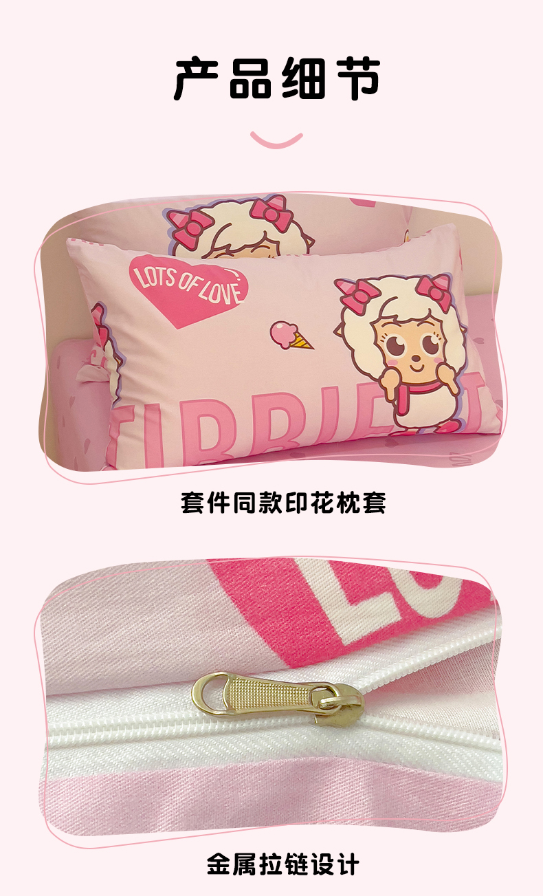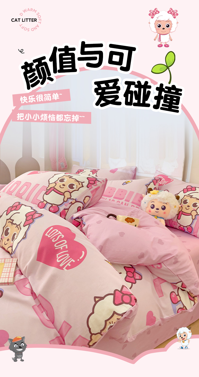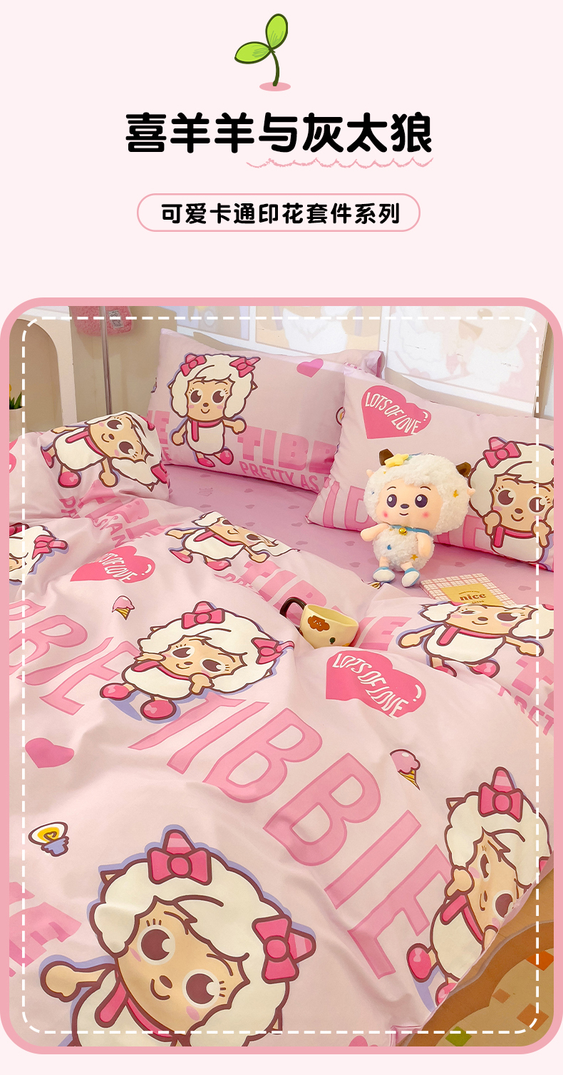 商品名称:小懒猪 2025新款卡通专版13372全棉喜羊羊系列四件套 可爱美羊羊