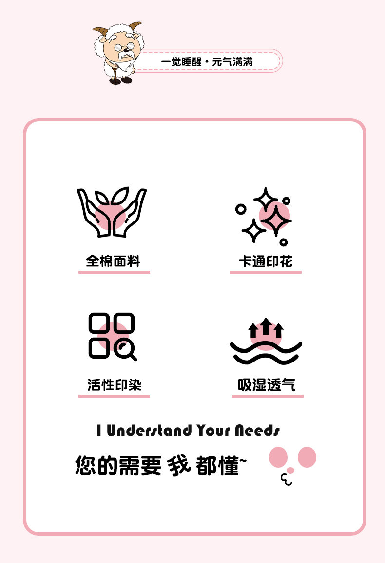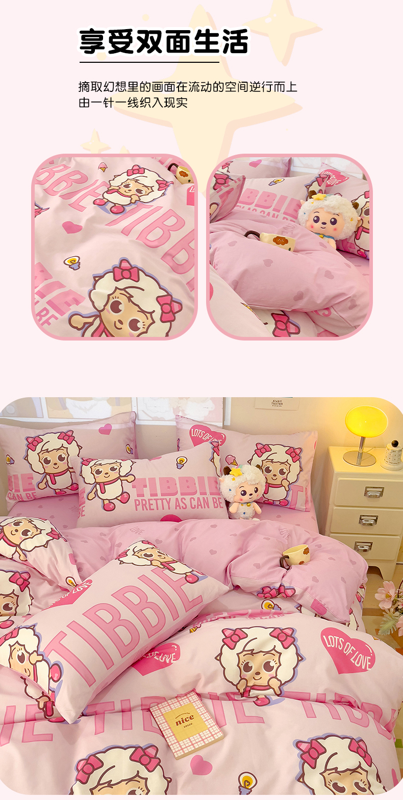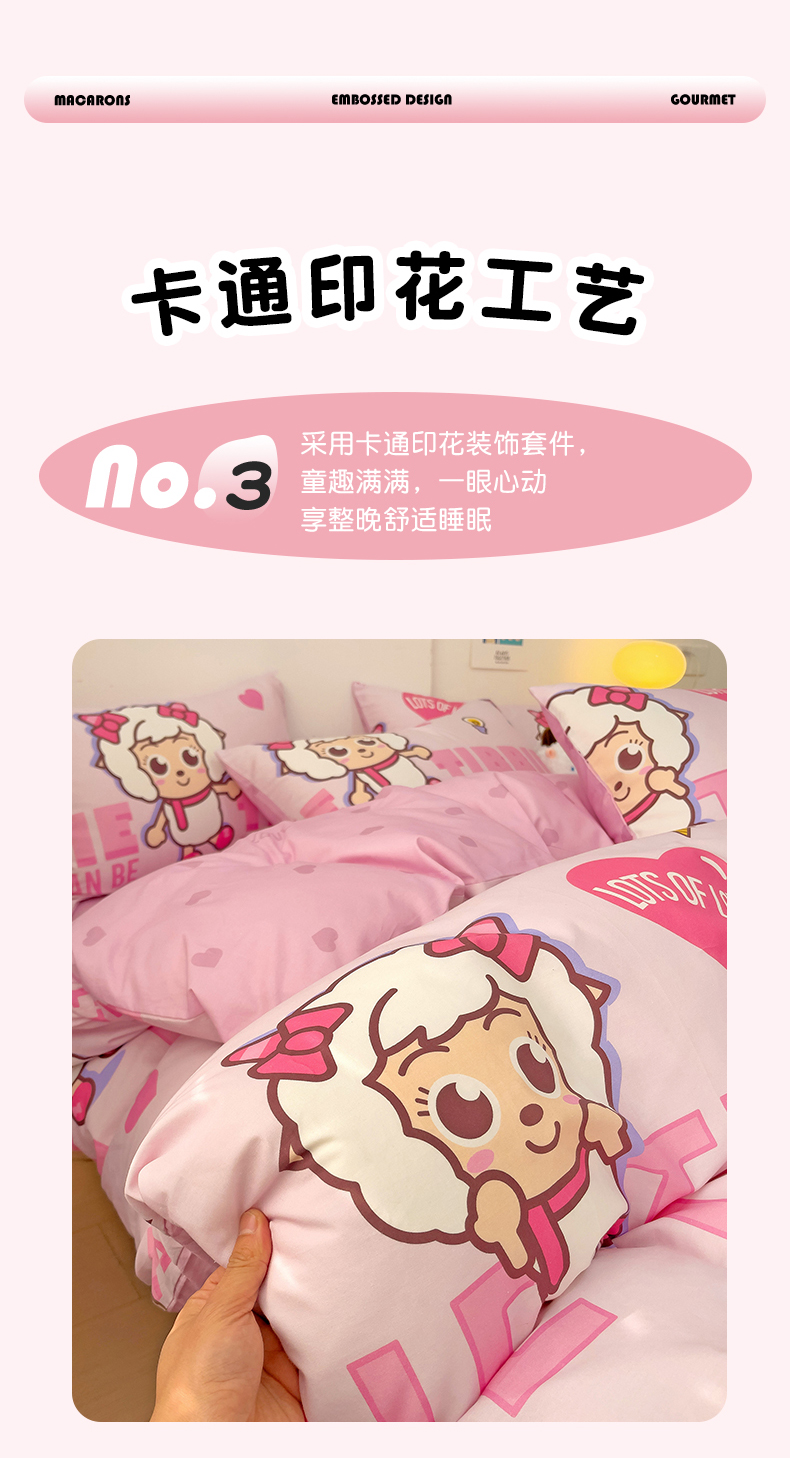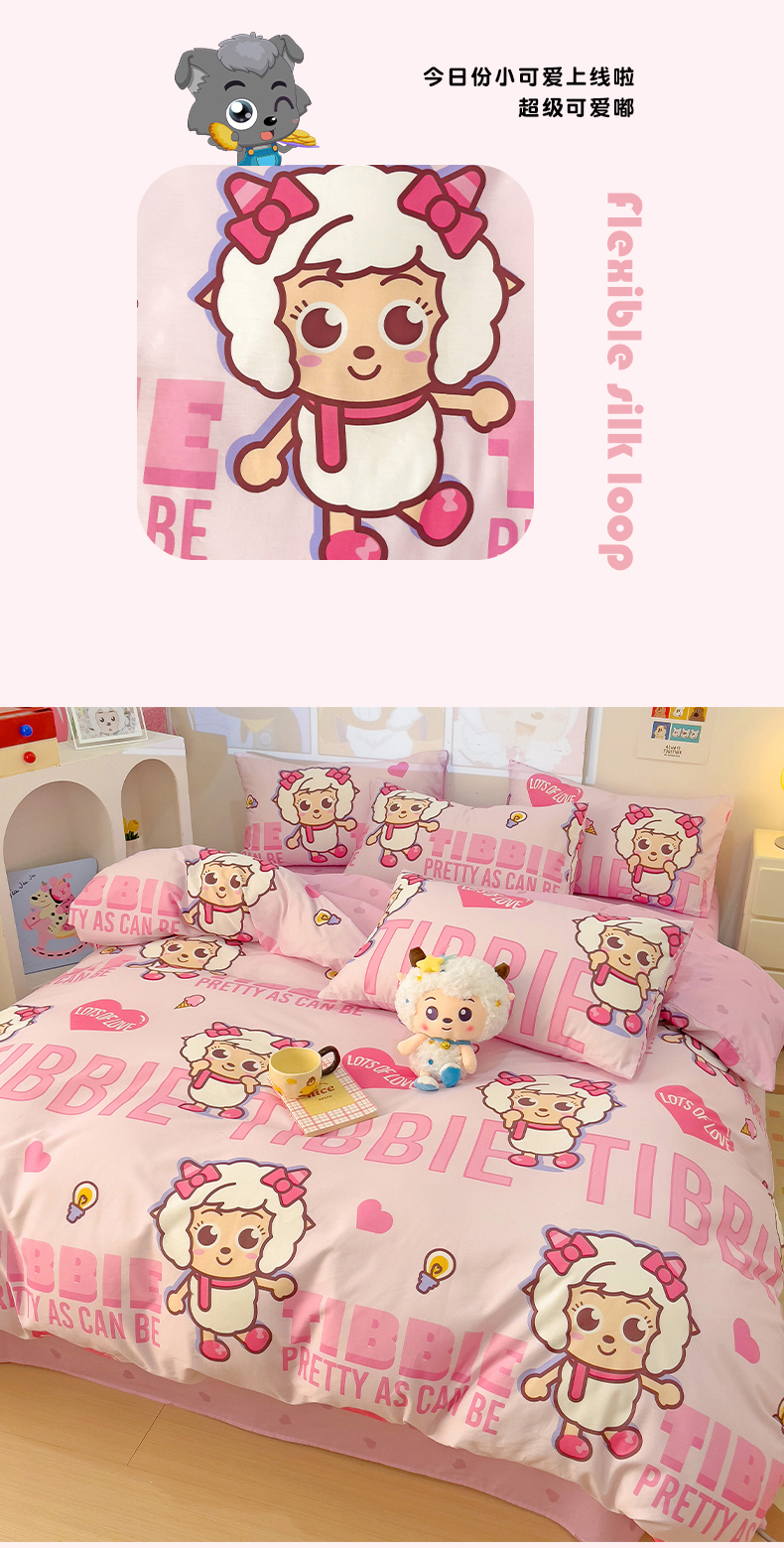 商品名称:小懒猪 2025新款卡通专版13372全棉喜羊羊系列四件套 可爱美羊羊