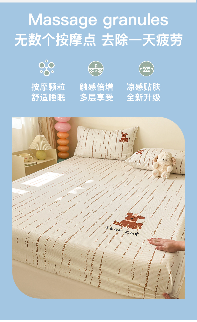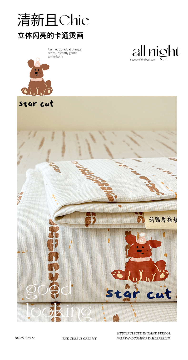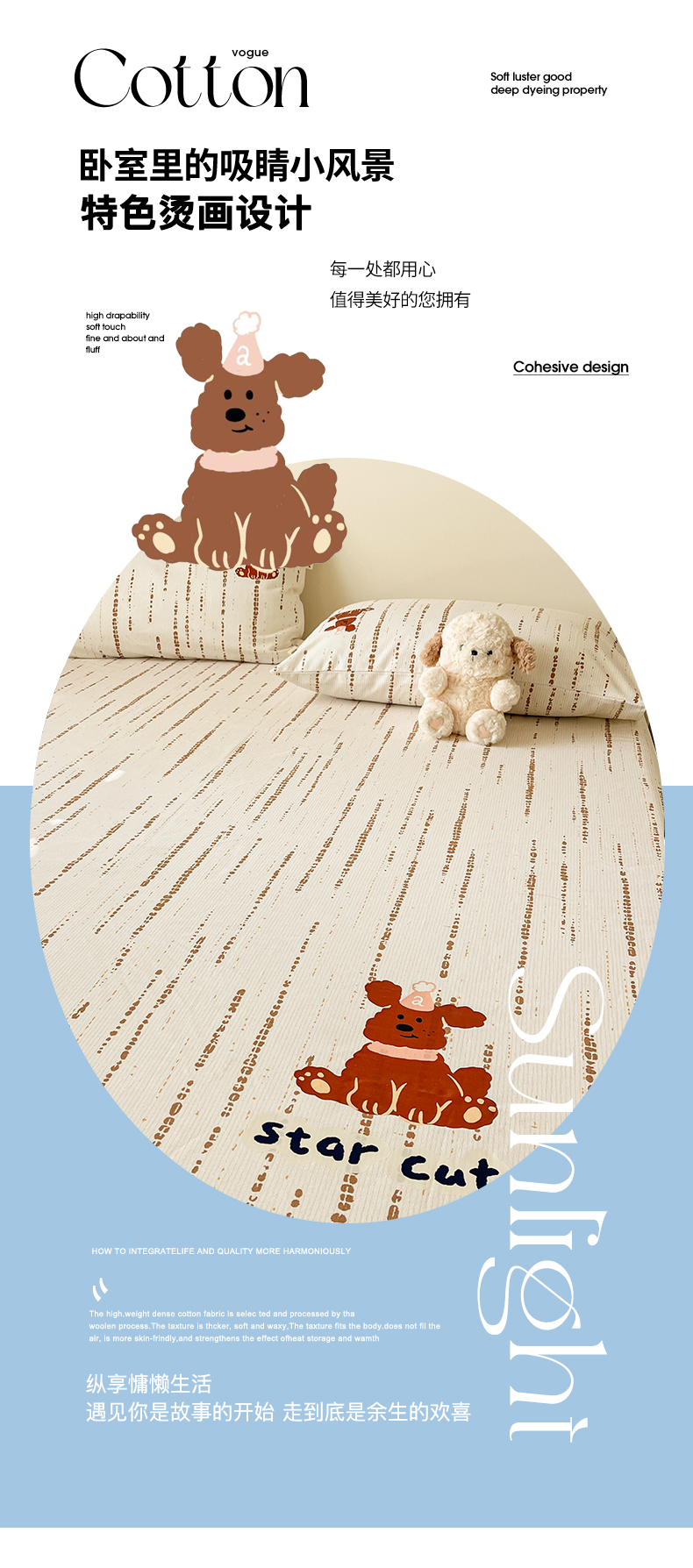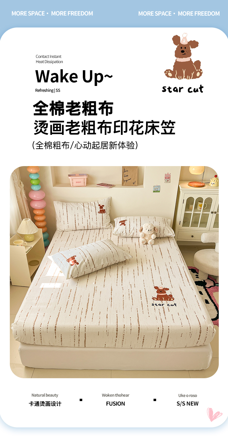 卧趣家纺 2025新款全棉烫画老粗布单品系列-床笠 派对狗-咖