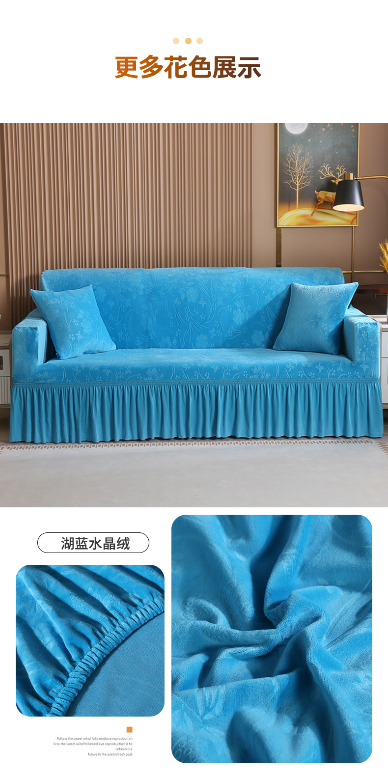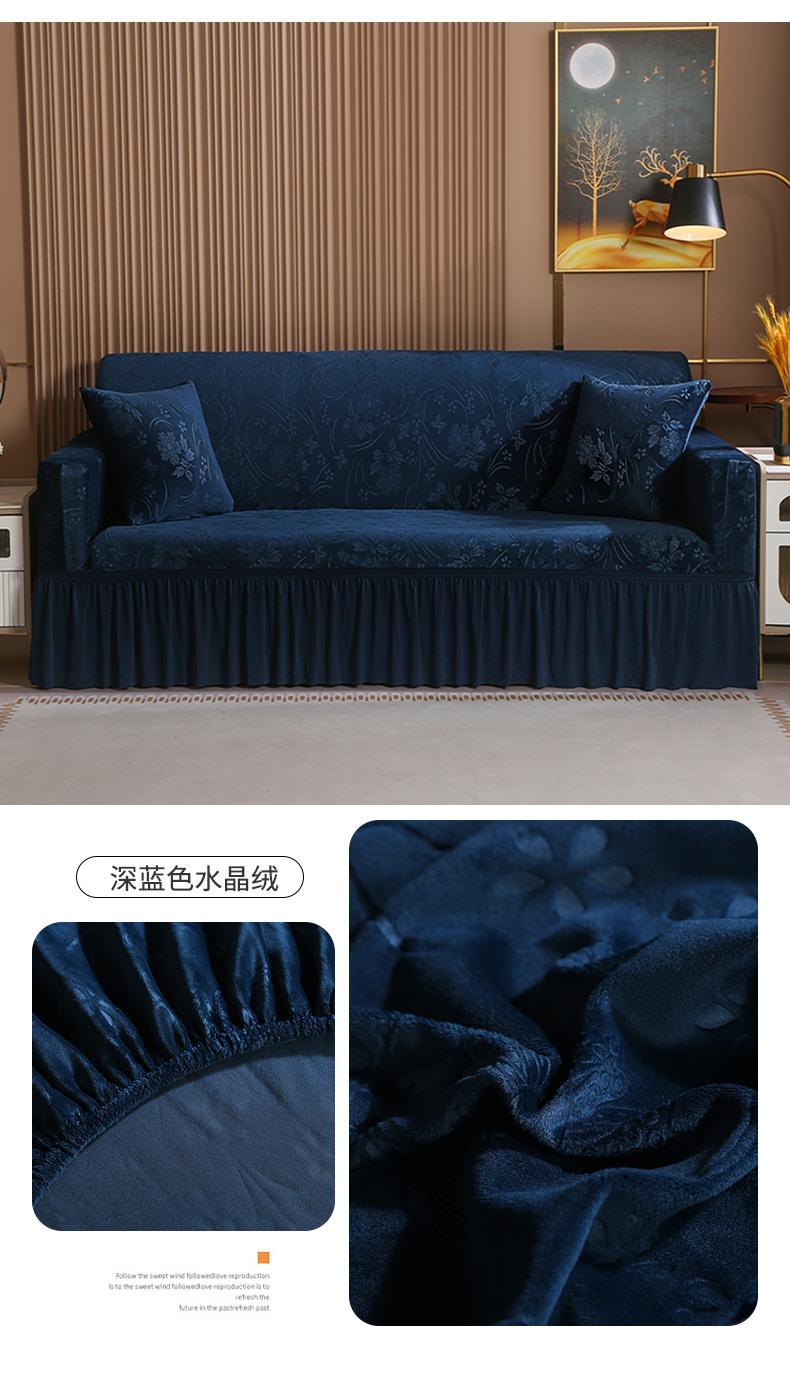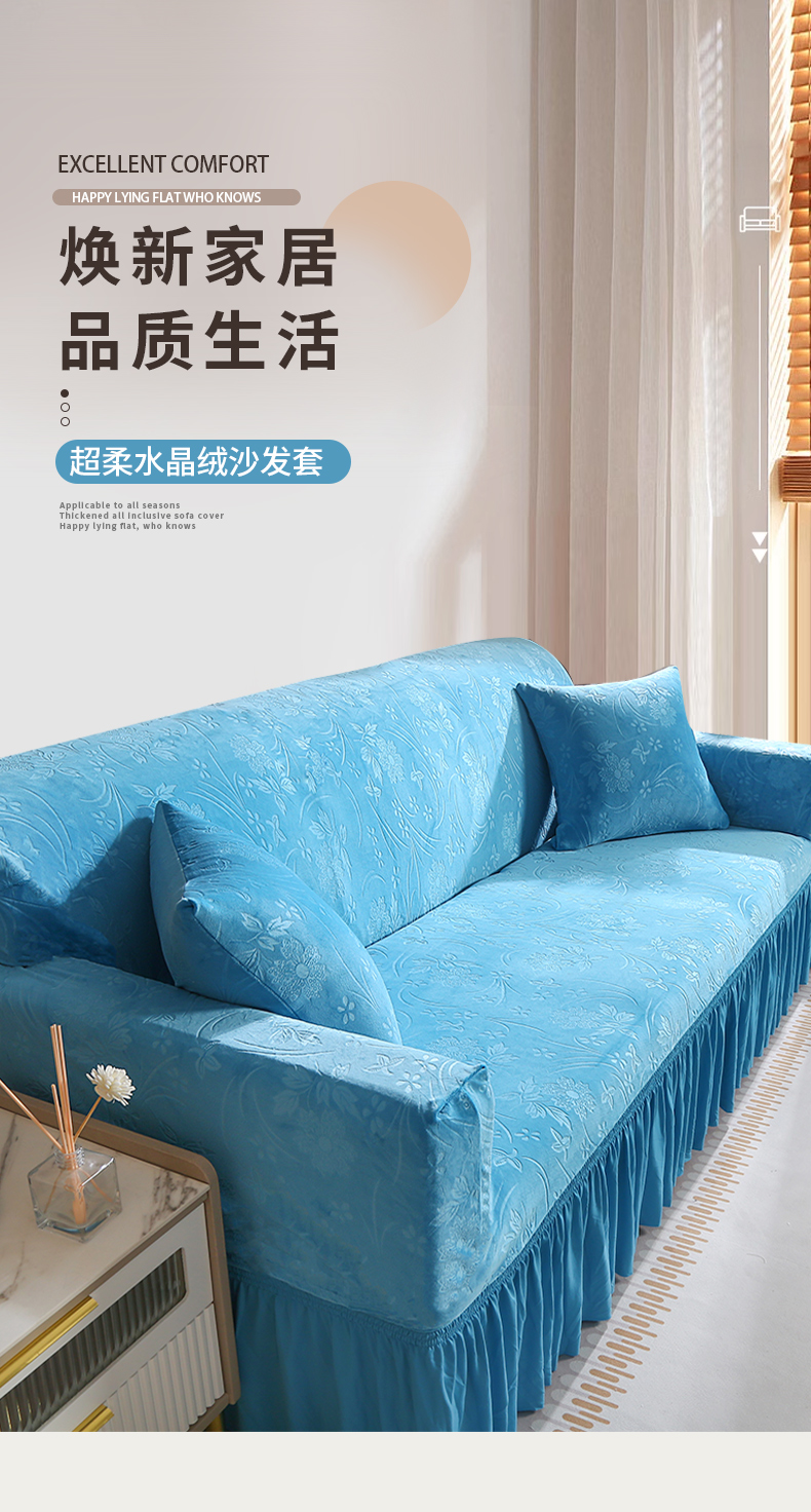 (总)布兰鸟【沙发套】 2025新款水晶绒沙发套【英文裙摆款】,湖蓝水晶绒,卡布奇诺水晶绒,米黄水晶绒,浅灰水晶绒,深蓝色水晶绒,烟灰水晶绒