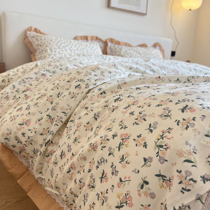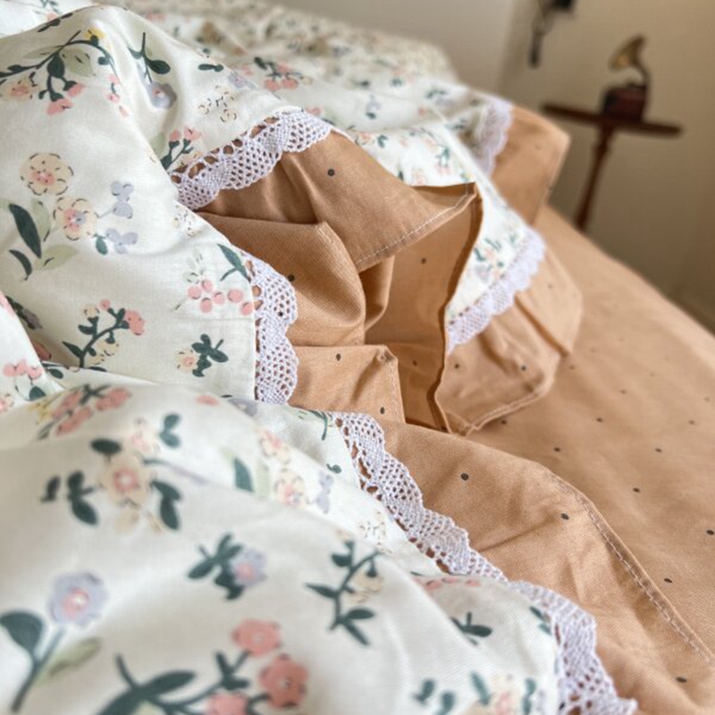 棉生活家纺 2025新款全棉小清新花边款蕾丝四件套 田园生活