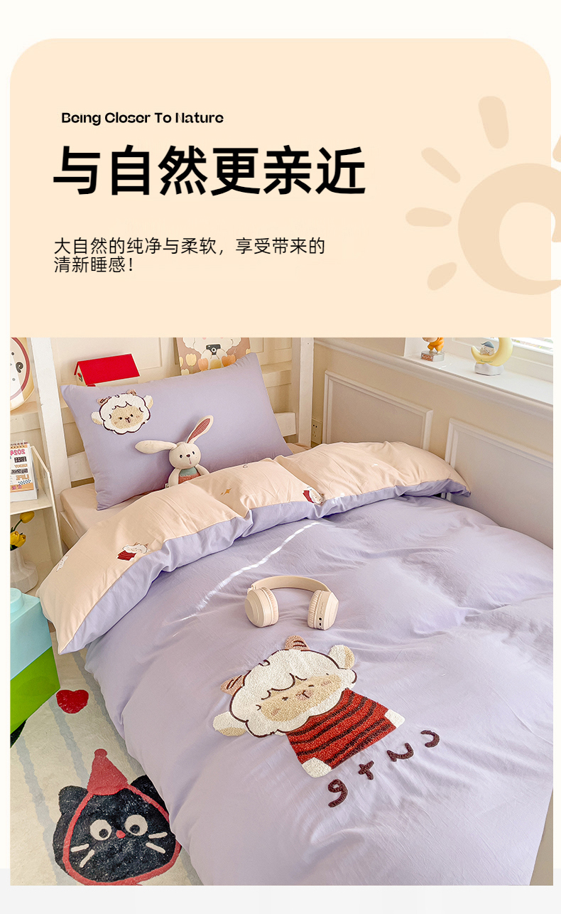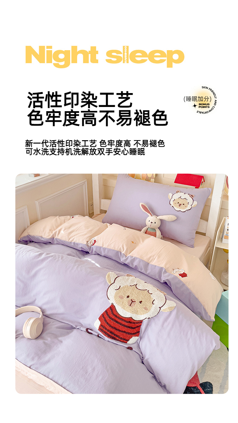 当前位置: 91家纺网 > 商品网购 > 床品套件 > 四件套 > 毛巾绣四件套 > 凯洛奇 2025新款1卡通水洗棉印+绣毛巾绣四件套(学生床)【提供买家秀】 美洋洋